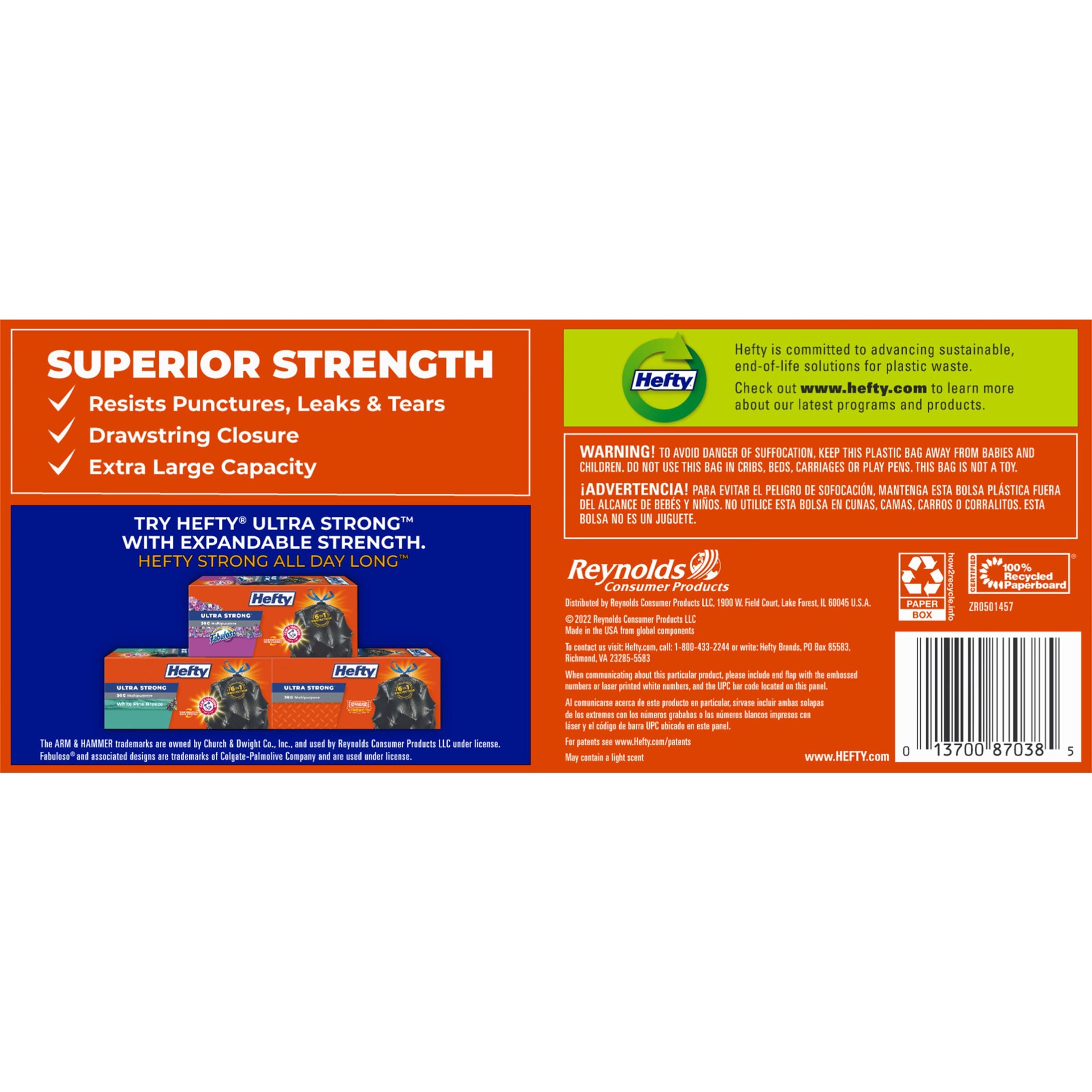 LARGE LAWN & LEAF GARBAGE BAGS—This package contains 38 Hefty Strong large, black, unscented, 39 gallon lawn & leaf bags. SUPERIOR PUNCTURE RESISTANCE—Composed of signature Hefty quality & extra-thick…
