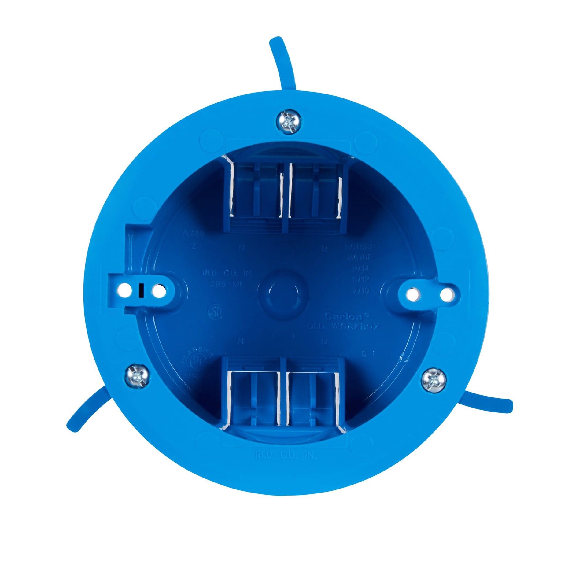 For old work applications where the wall is enclosed. Durable PVC construction. Mounts with swing clamps. Includes 4 integral clamps that hold wires securely. Not listed for fixture support in ceiling…