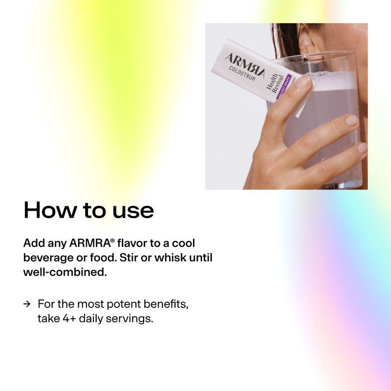Welcome to The Revival of Health™. ARMRA Colostrum™ is the premium bovine colostrum concentrate with 400+ bioactive nutrients that deliver the master instructions your body still runs on for gut, immu…