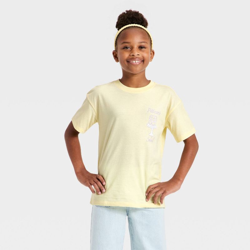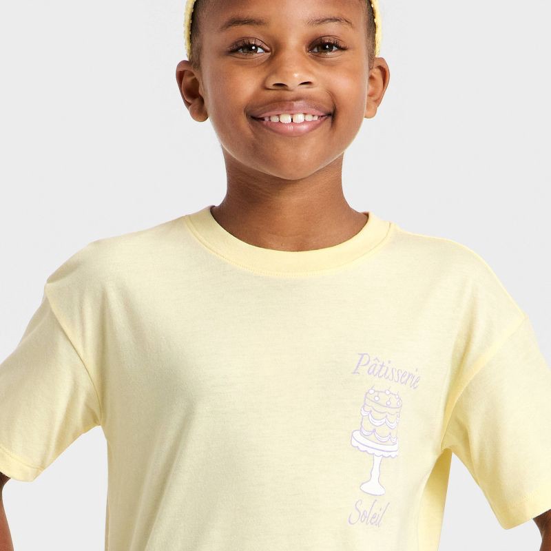 Bring sweet, expressive style to their wardrobe with this Short-Sleeve Oversized Patisserie Graphic T-Shirt from Cat & Jack™. This jersey T-shirt is made from a lightweight cotton-recycled polyester b…