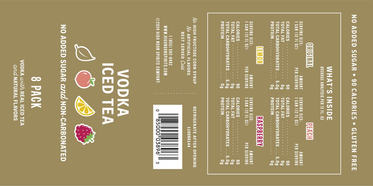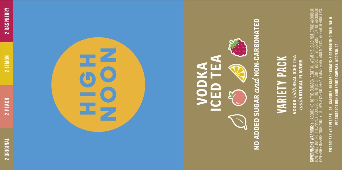 Live like the sun''s out with High Noon Non-Carbonated Vodka Iced Tea. Made with real vodka & real iced tea. High Noon Vodka Iced Tea features black tea, light sweetness, and is non- carbonated. With …