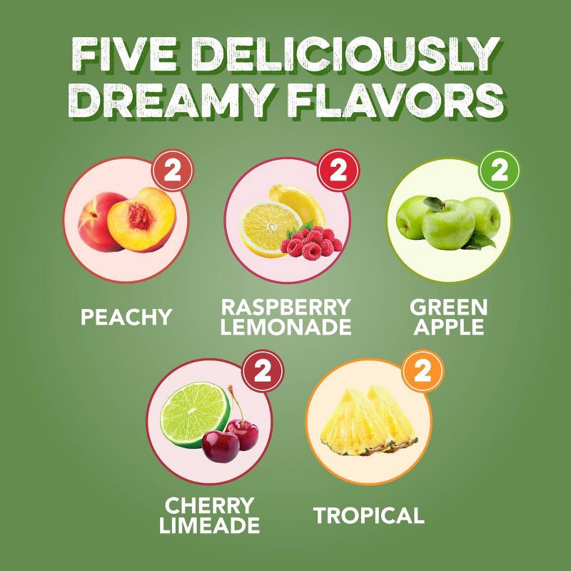 - Five light and fruity flavors, two of each flavor