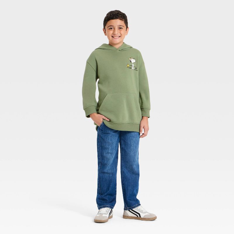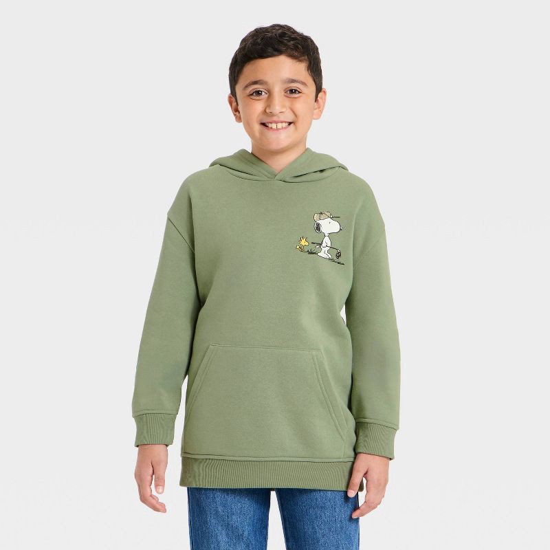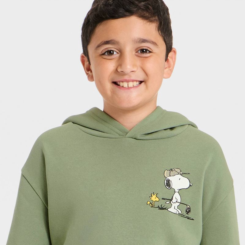 Boys' Peanuts Snoopy and Woodstock Golf Front and Back Graphic Pullover Hoodie Sweatshirt - Green M