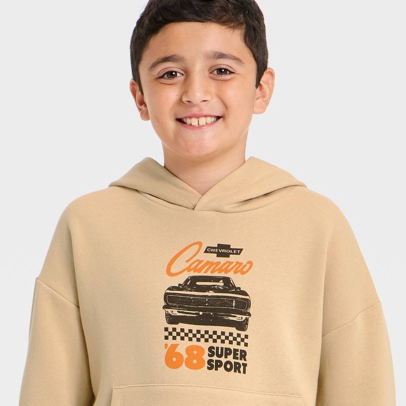 Boys' Chevrolet Camaro Front and Back Graphic Pullover Hoodie Sweatshirt - Beige XL