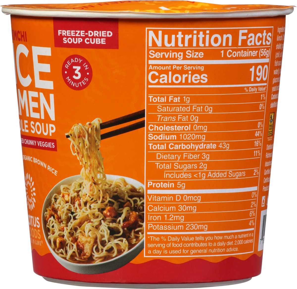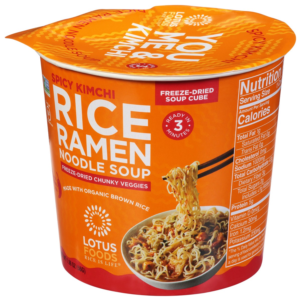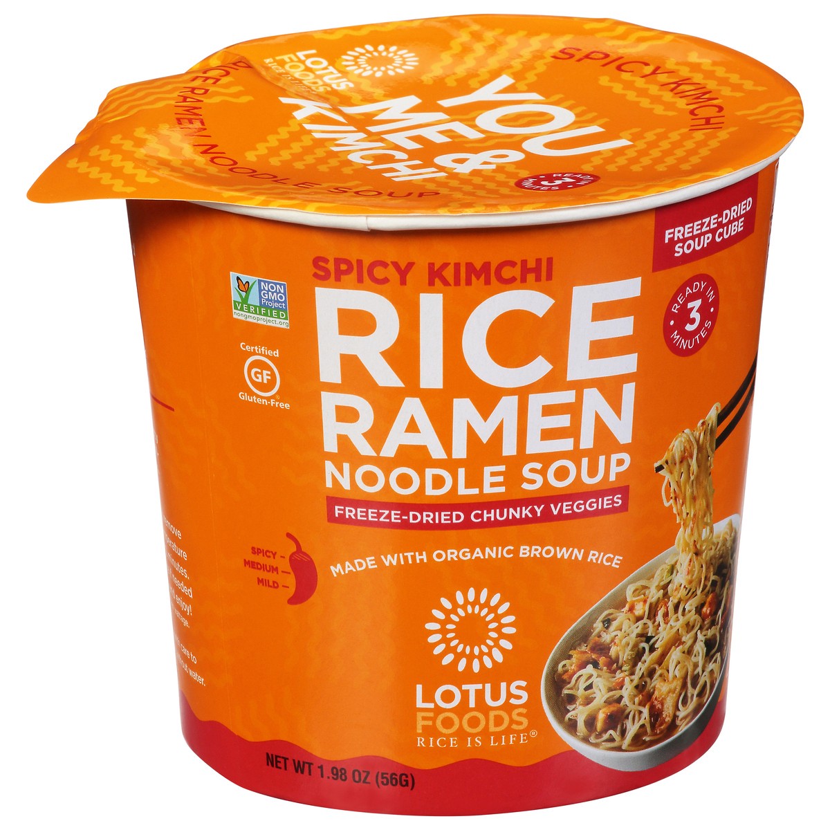 Rice is life. The Asian cup of noodles reinvented! Glute-free organic brown rice noodles and good as fresh freeze-fried veggies that spring to life are paired with spicy kimchi, the cherished Korean s…