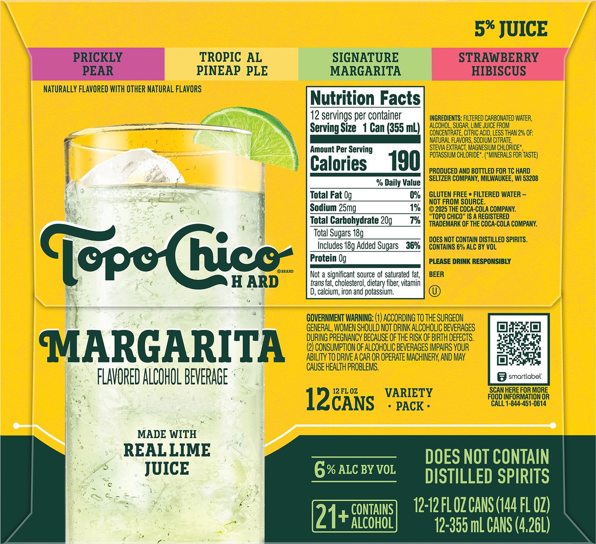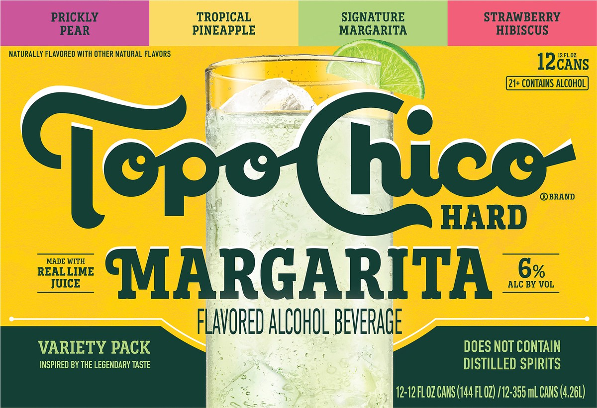 - 12 pack 12.0 fl oz cans of Topo Chico Hard Margarita Variety Pack