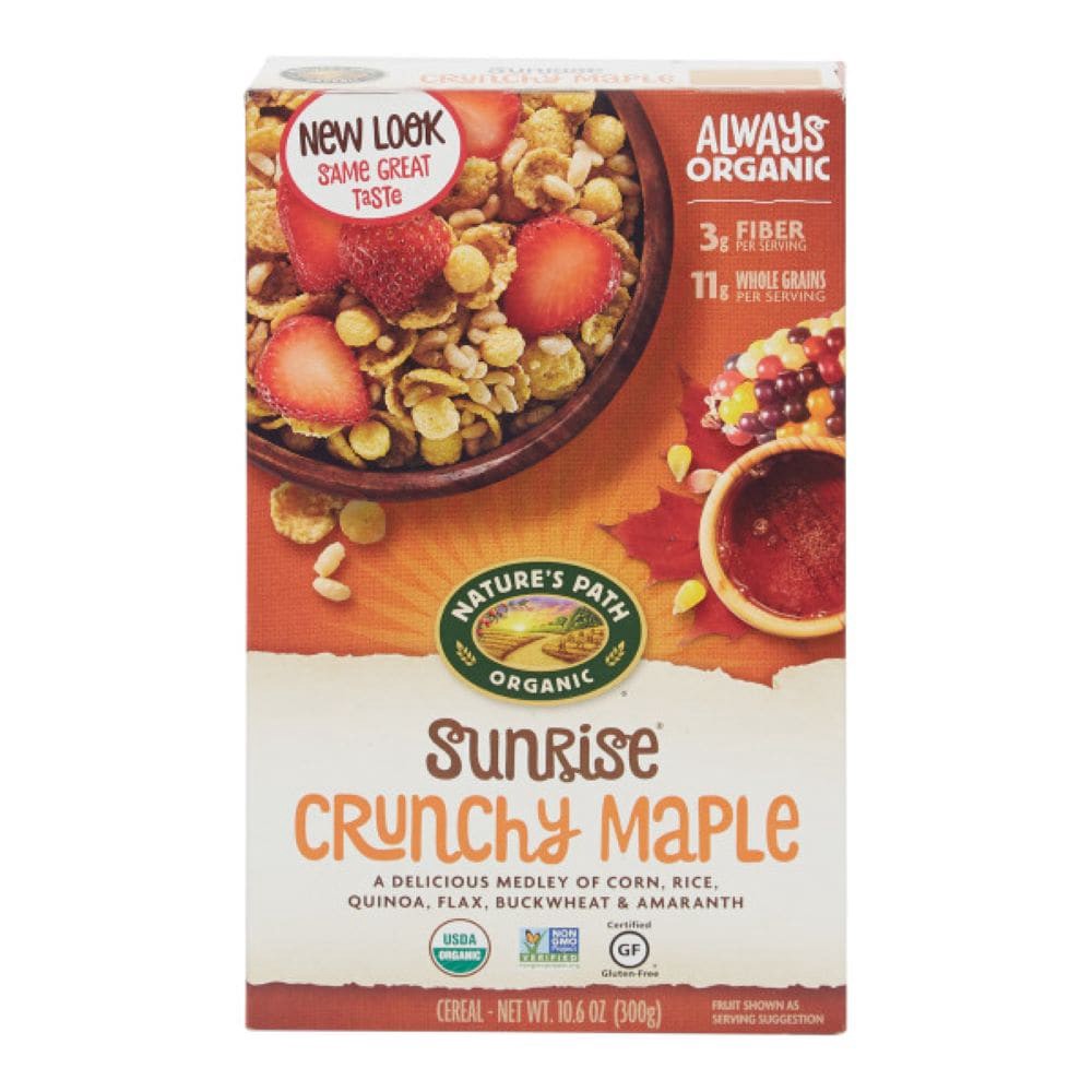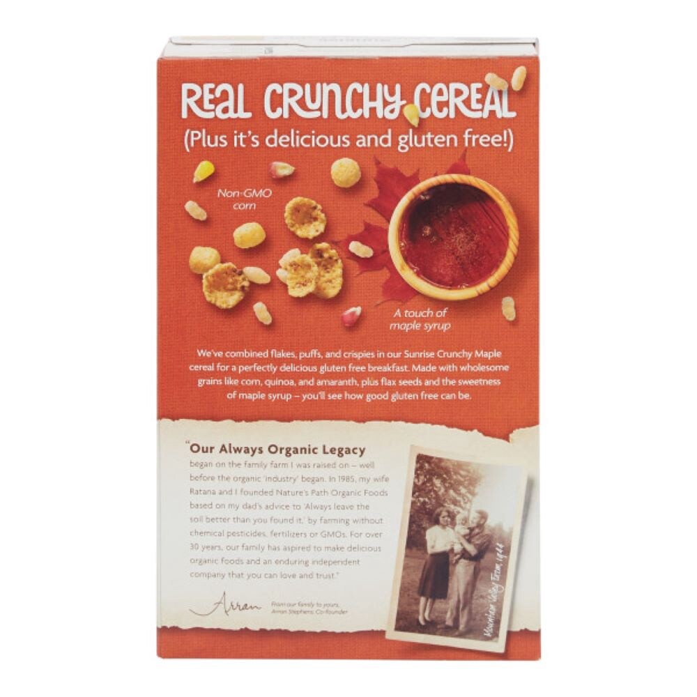 Nature''s Path Sunrise Crunchy Maple cereal is a deliciously crunchy combination of gluten free cereal flakes, organic corn puffs and rice crispies, all coated with real organic maple syrup. For too l…