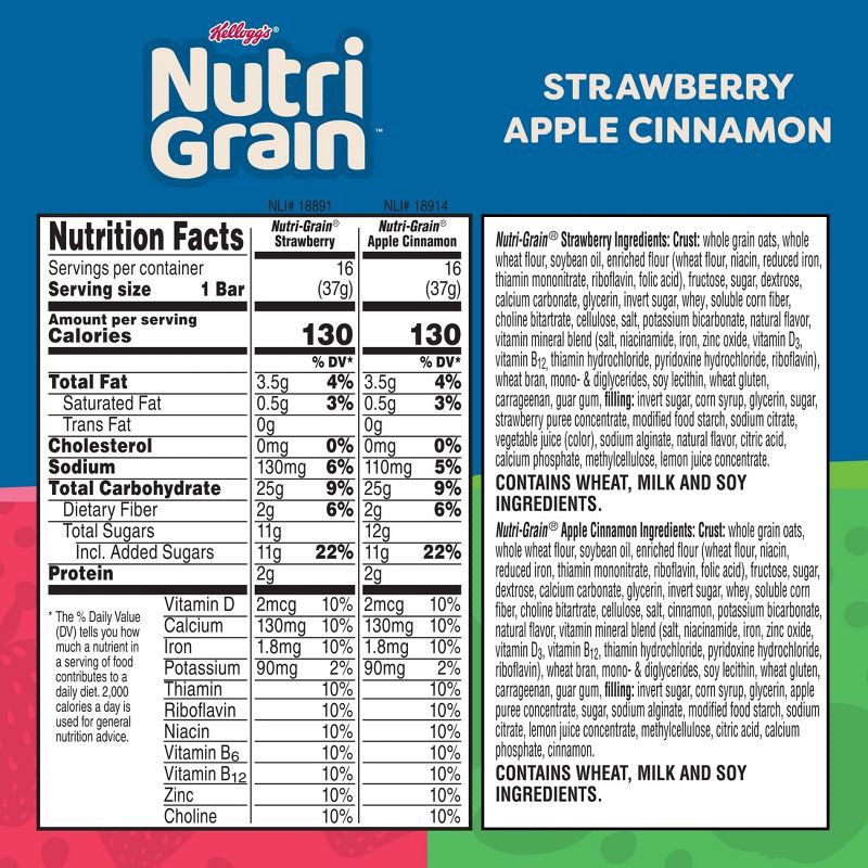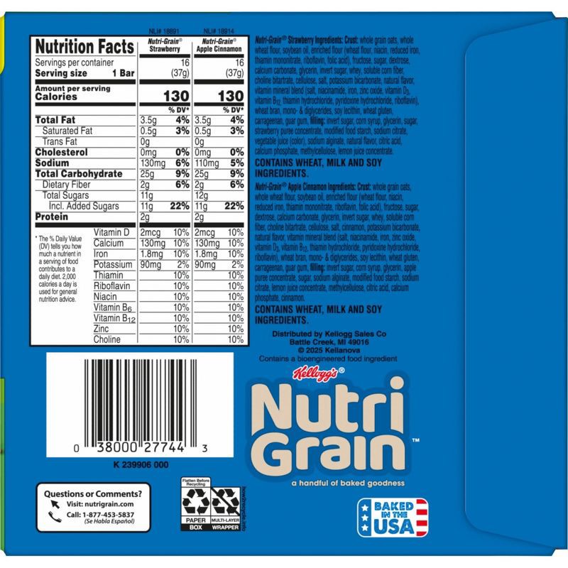 Nutri-Grain® Apple Cinnamon - Crust: Whole Grain Oats, Enriched Flour (Wheat Flour, Niacin, Reduced Iron, Vitamin B₁ [Thiamin Mononitrate], Vitamin B2 [Riboflavin], Folic Acid), Soybean Oil, Whole Whe…