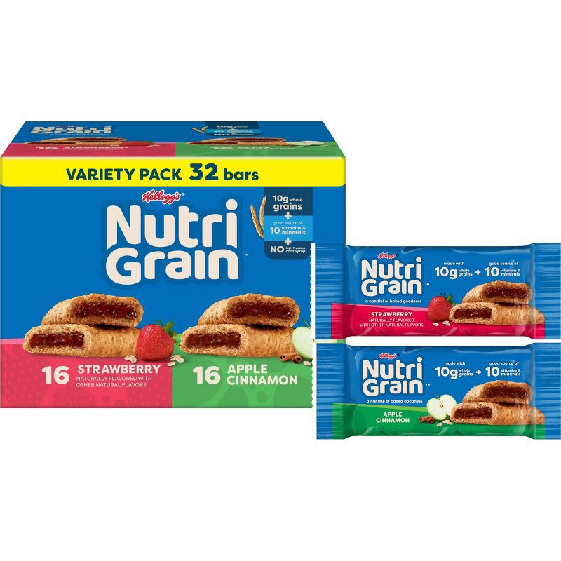 - Includes 1, 41.6oz box containing 32 ready-to-eat Nutri-Grain breakfast bars; Packaged for freshness and great taste