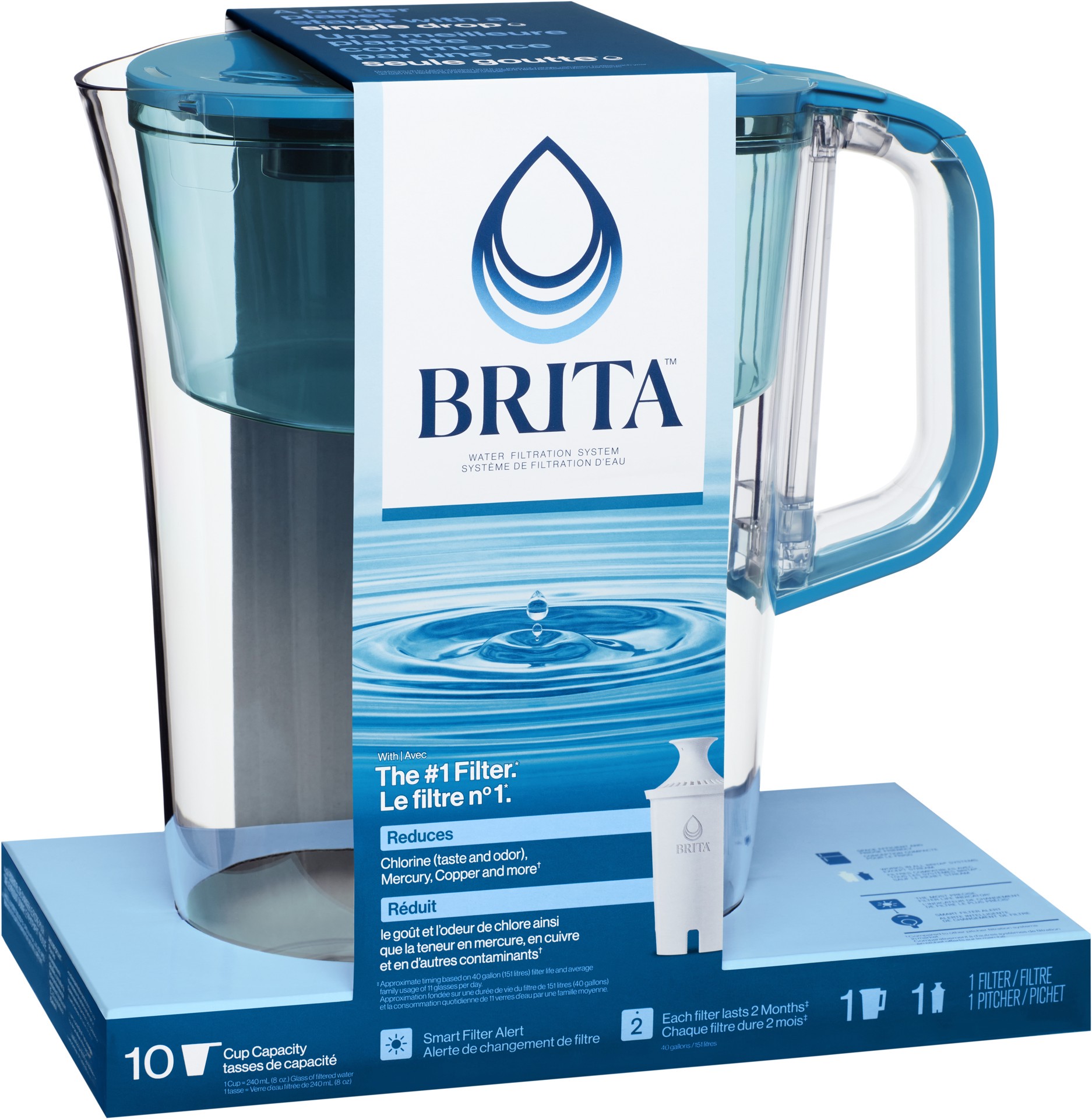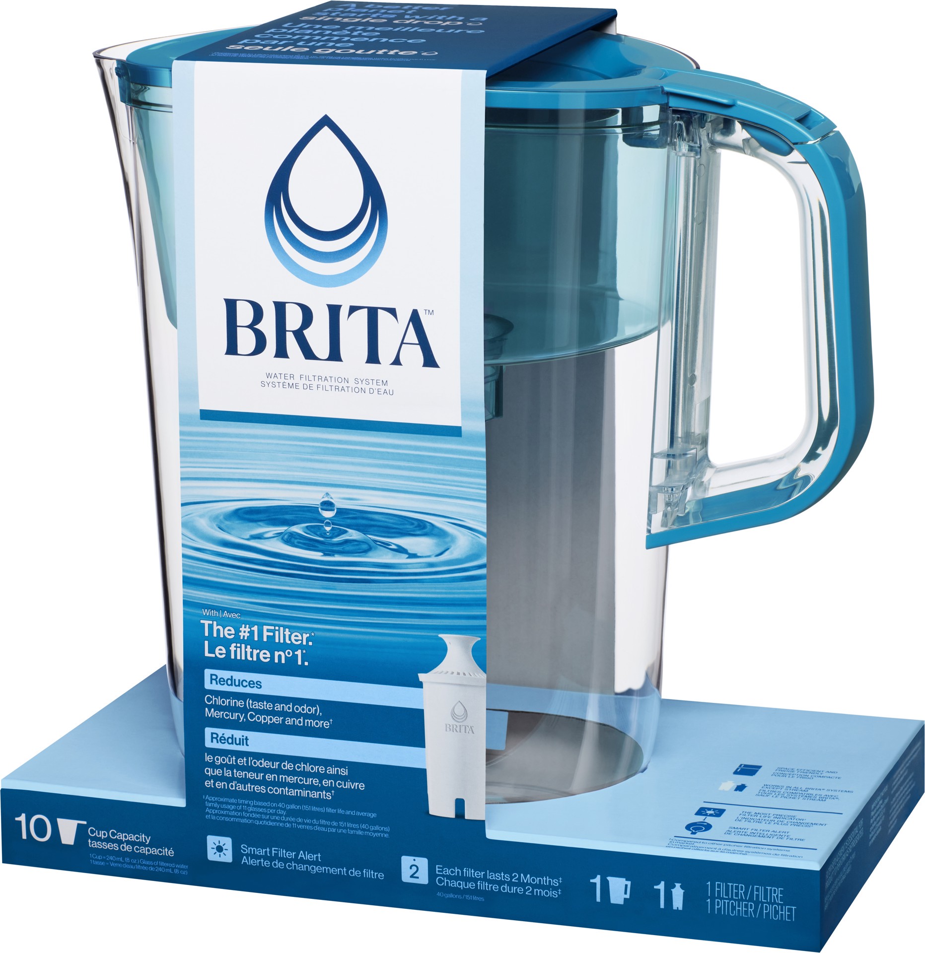 - Large 10-cup Brita Tahoe Water Pitcher includes one Standard filter to help remove impurities from your tap water