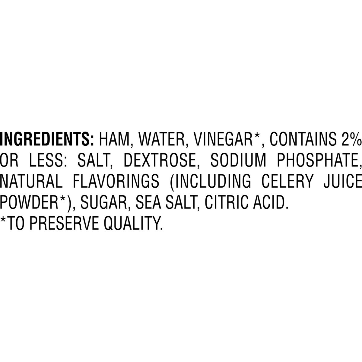 Ham, Water, Vinegar*, Contains 2% Or Less: Salt, Dextrose, Sodium Phosphate, Natural Flavorings (Including Celery Juice Powder*), Sugar, Sea Salt, Citric Acid. *To Preserve Quality.