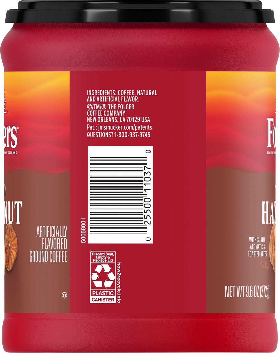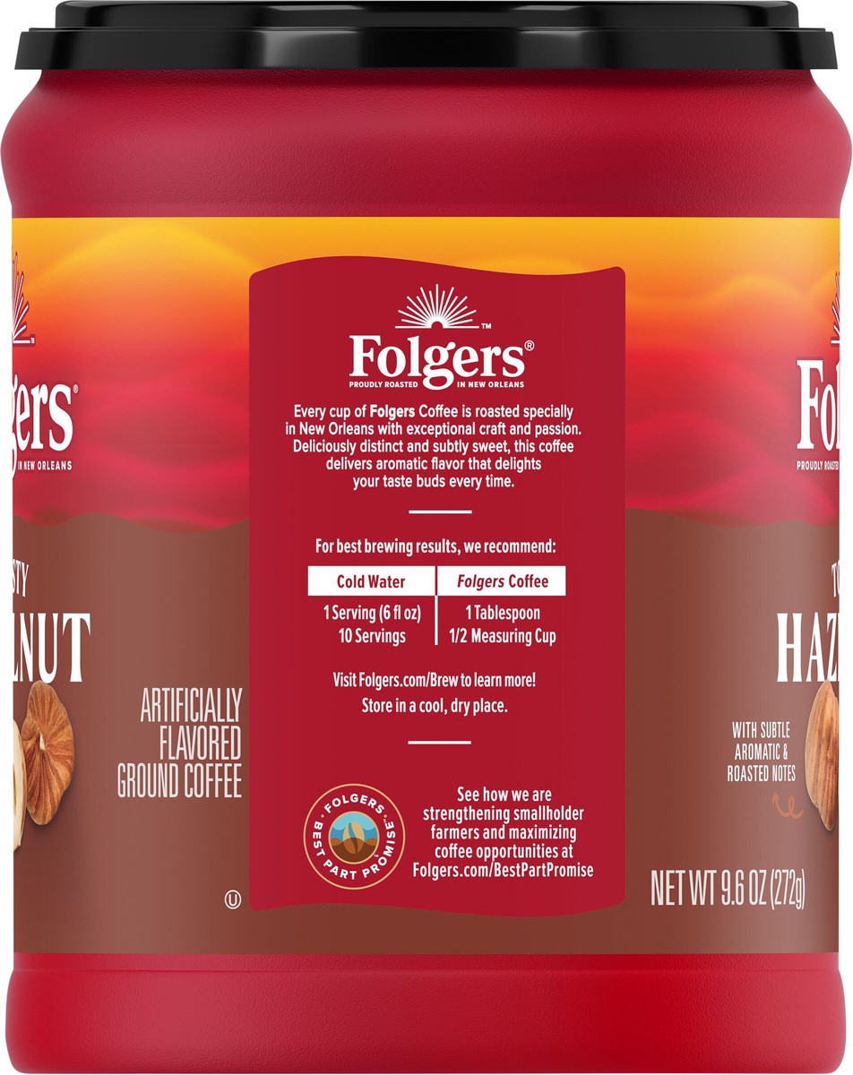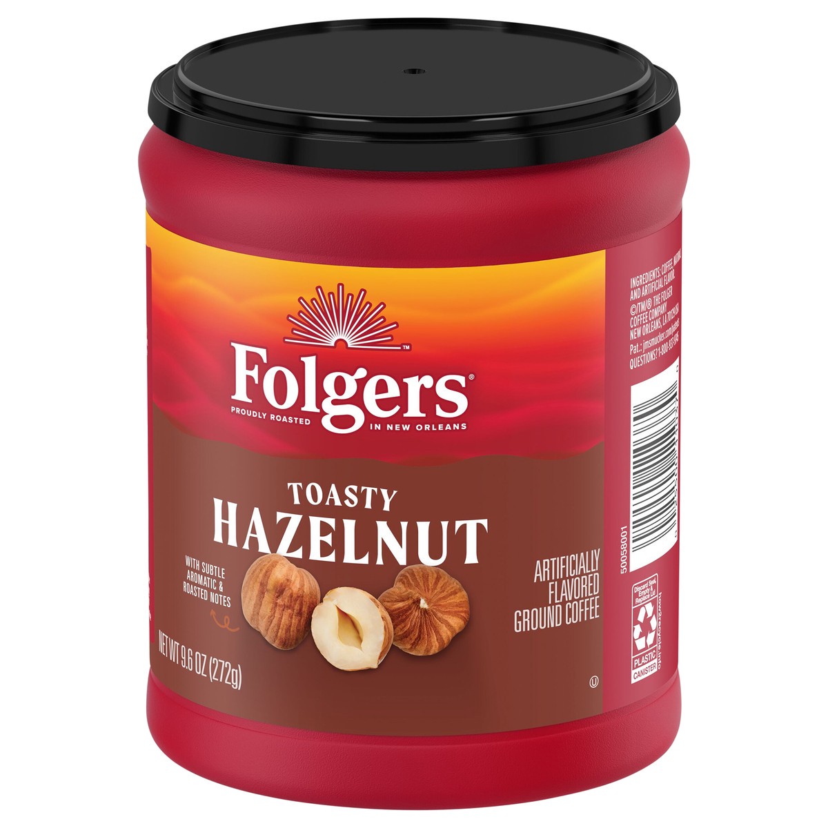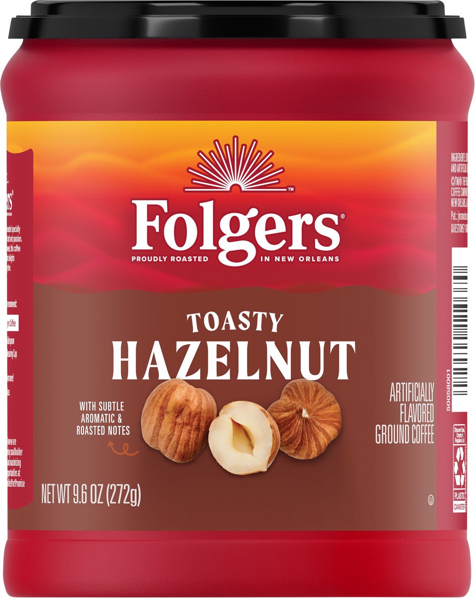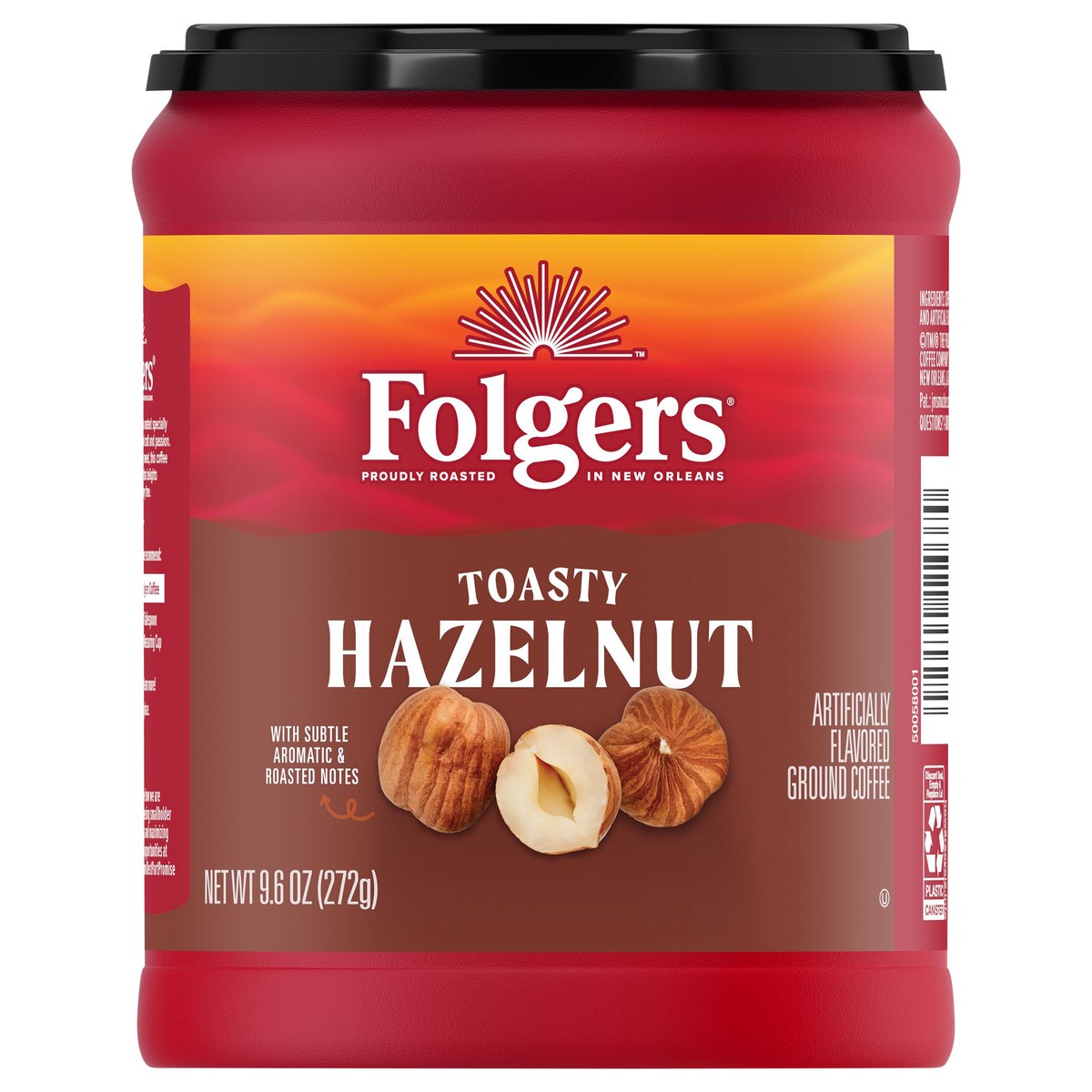 - Contains one (1) 9.6 oz. canister of Folgers Toasty Hazelnut artificially flavored coffee