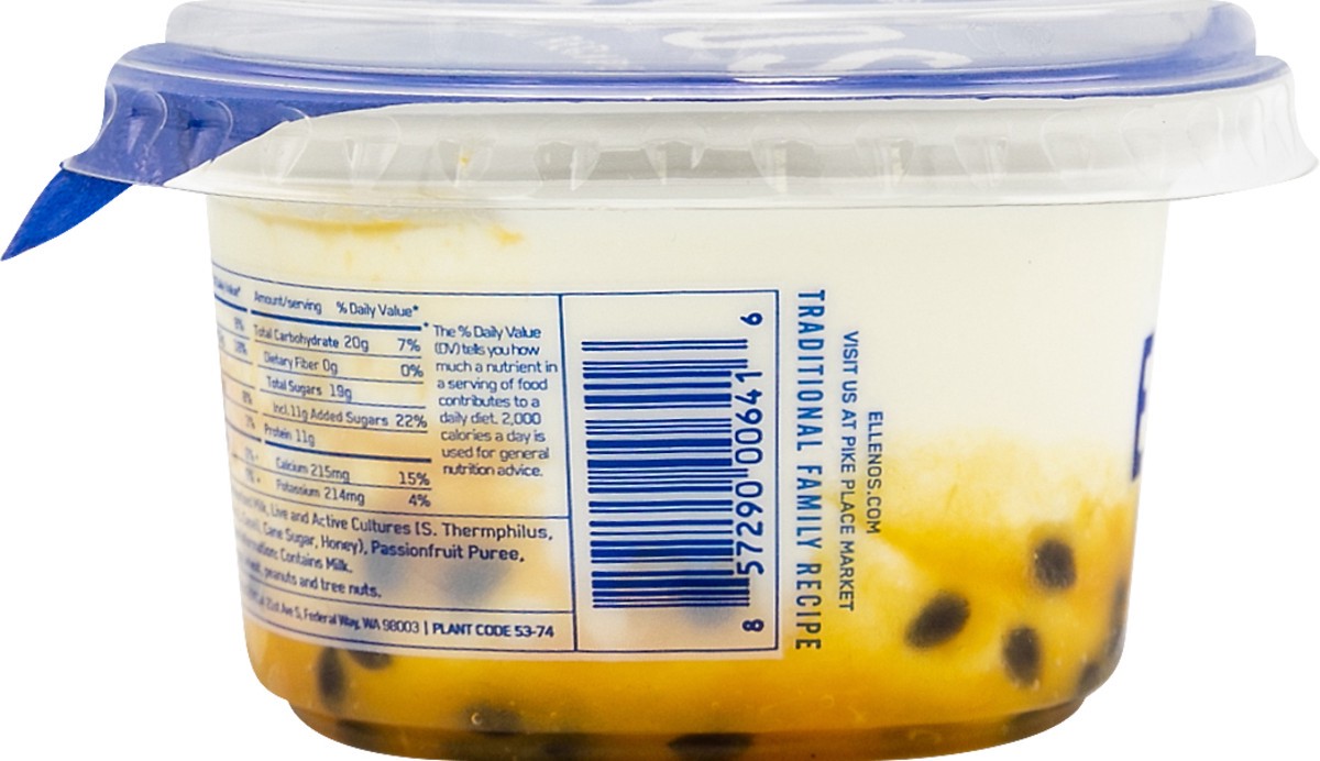 Real Greek Yogurt. Traditional family recipe. The above information is accurate as of May 2020, please see packaging for any updated information. Grade A. ellenos.com. Visit us at Pike Place Market.