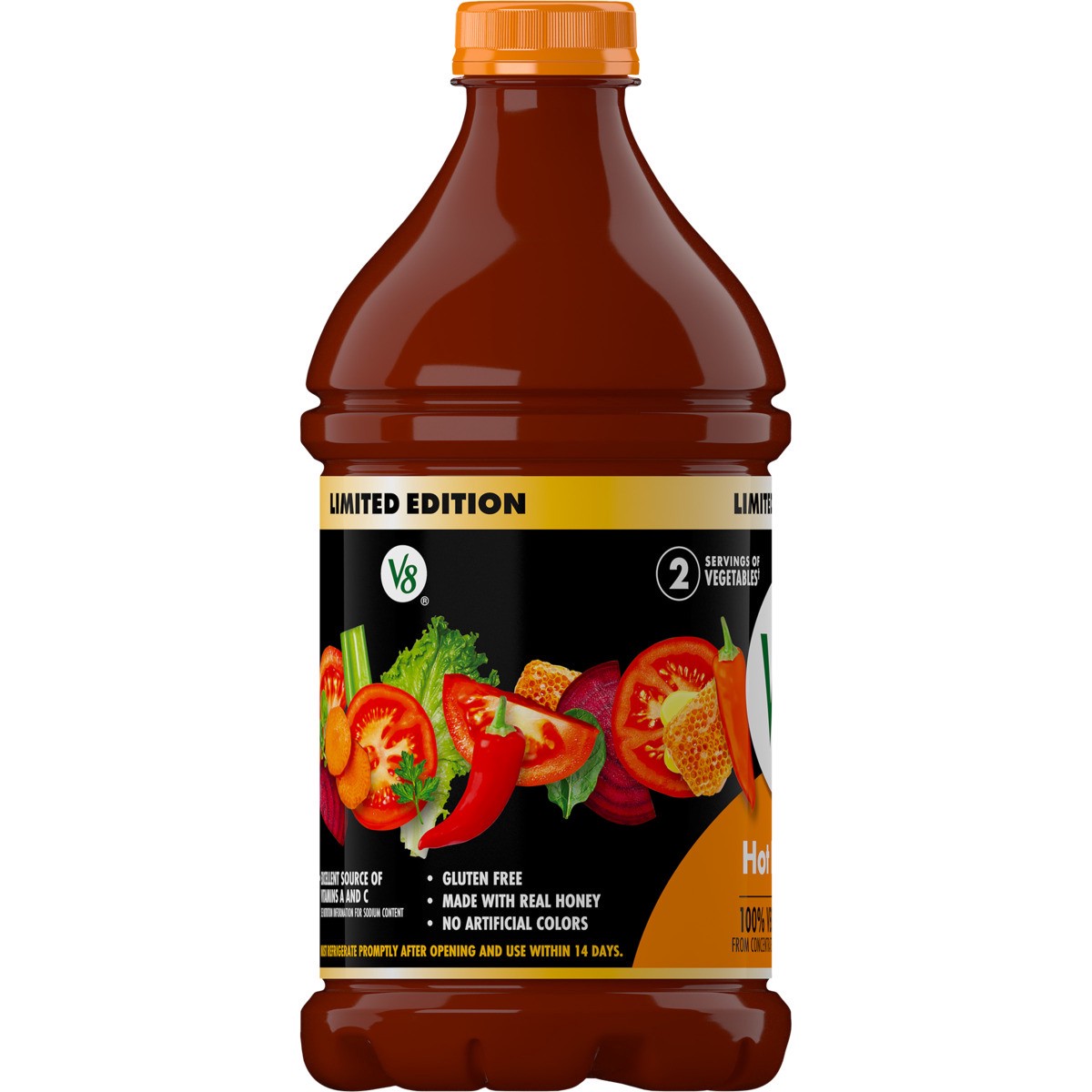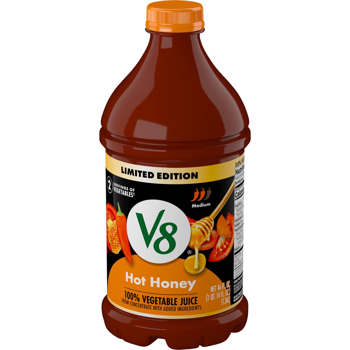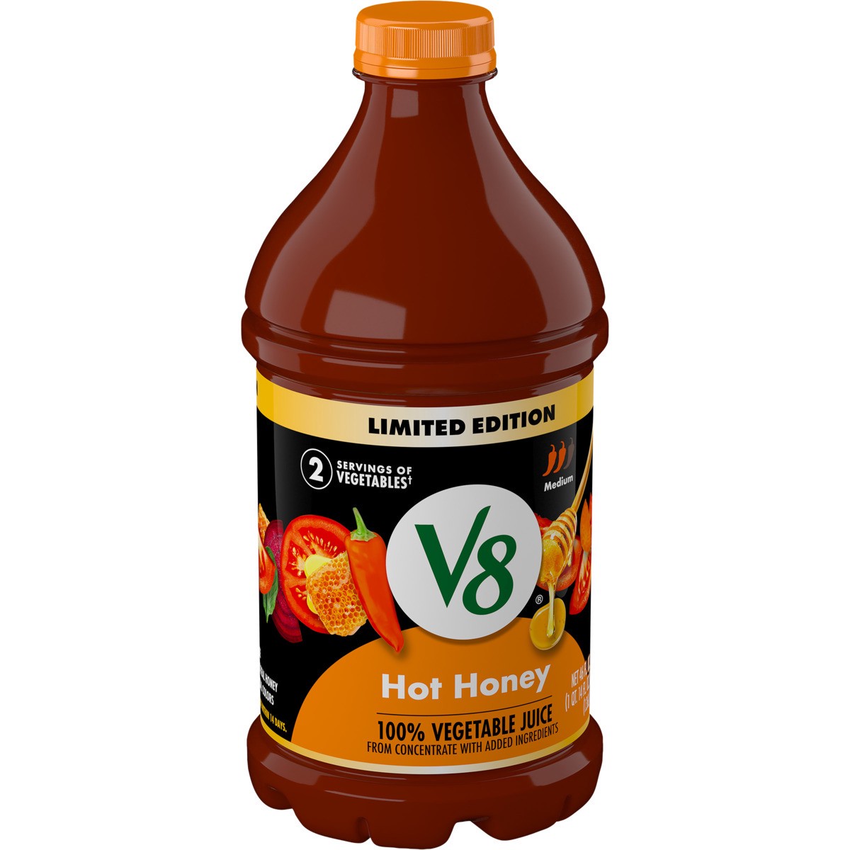 - Featuring the perfect balance of honey and chili pepper extract for a sweet and spicy V8 juice with a Medium heat level