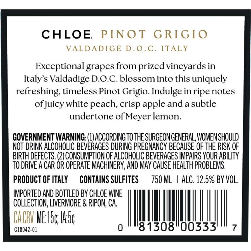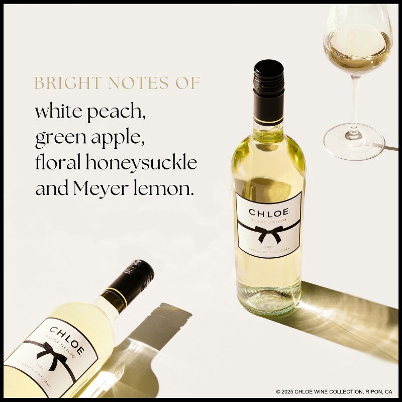 - Chloe Wine Collection Pinot Grigio White Wine is bright and crisp, with flavor notes of white peach, melon, apple and floral.