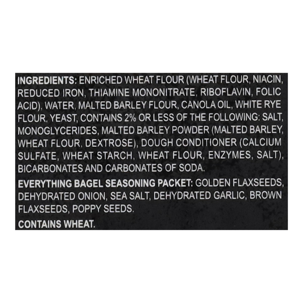 Enriched Wheat Flour (Wheat Flour, Niacin, Reduced Iron, Thiamine Mononitrate, Riboflavin, Folic Acid), Water, Malted Barley Flour, Canola Oil, White Rye Flour, Yeast, Contains 2% or Less of the Follo…