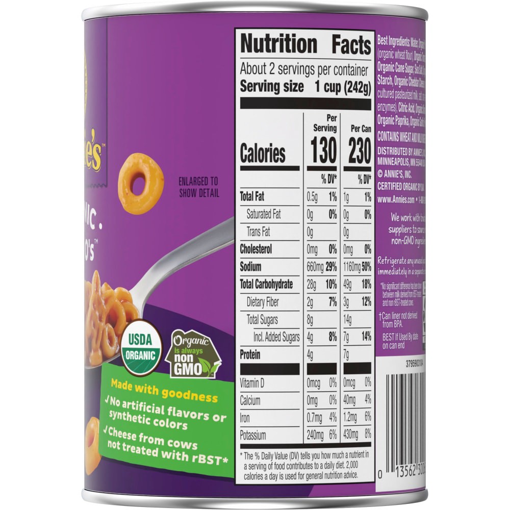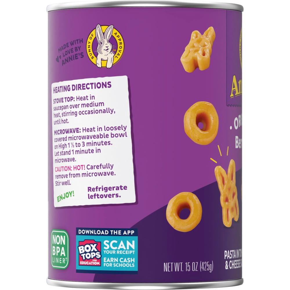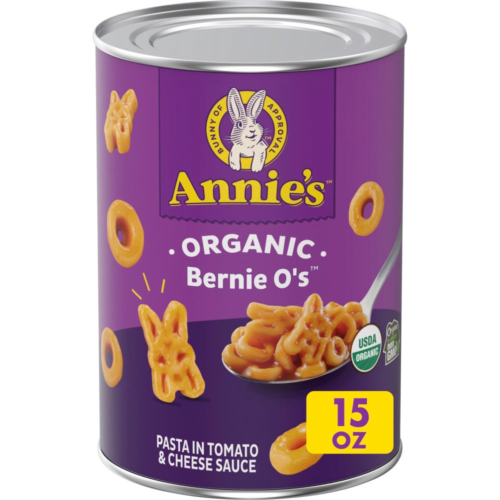 Annie's Organic Bernie O's are delicious and tons of fun to eat. This canned pasta meal addition is non-GMO and made with certified USDA Organic pasta in a savory tomato and cheese sauce full of scrum…