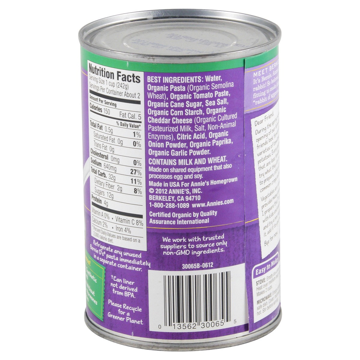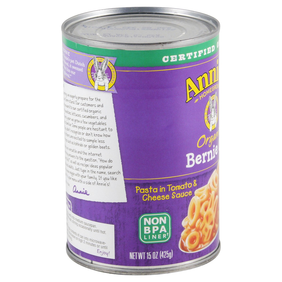 Annie's Organic Bernie O's are delicious and tons of fun to eat. This canned pasta meal addition is non-GMO and made with certified USDA Organic pasta in a savory tomato and cheese sauce full of scrum…