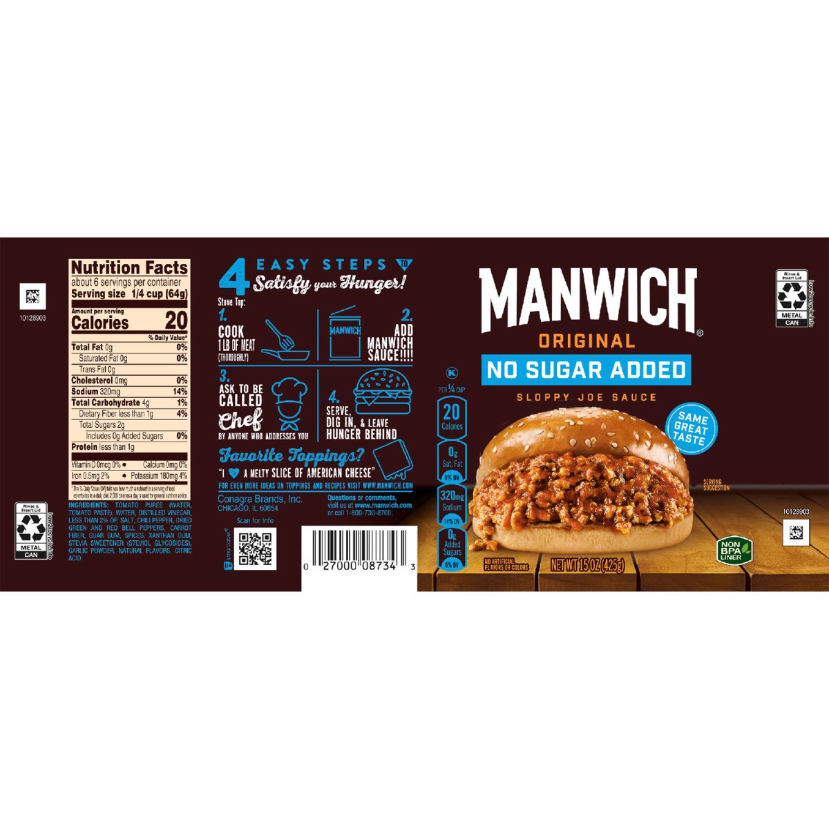 - Stock your pantry with Manwich Original No Sugar Added Sloppy Joe Sauce to make every night a Manwich night