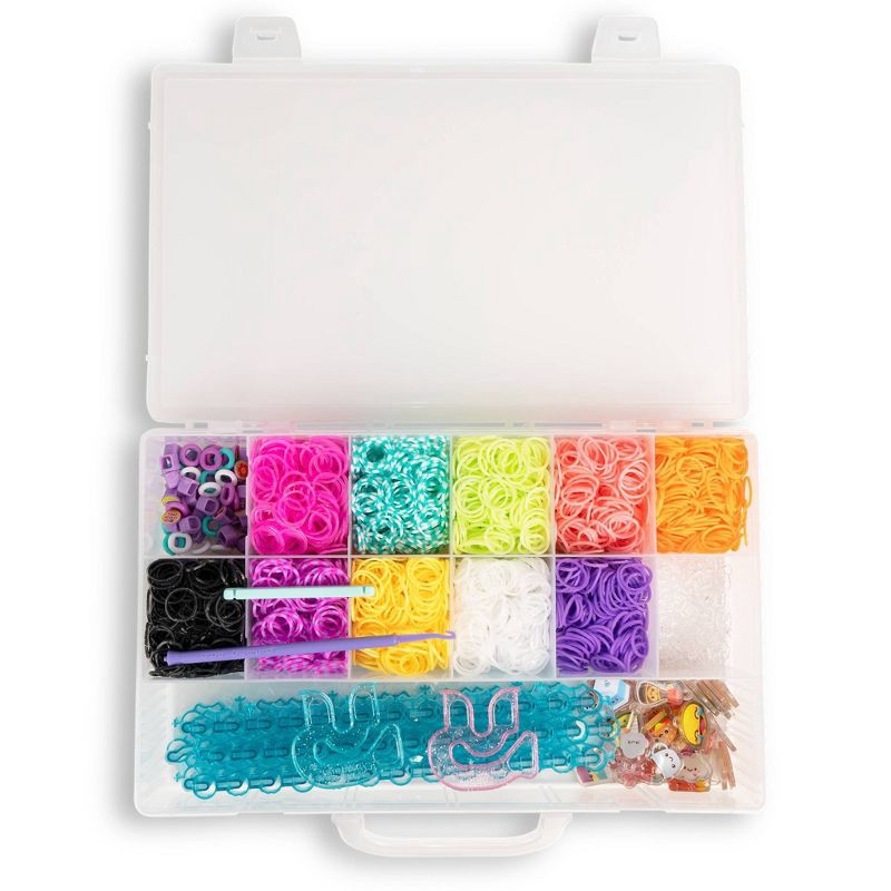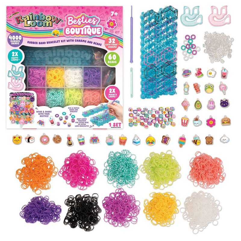- Includes: 1 storage case, 4000 rubber bands, 2 Mighty Looms™, 2 Happy Looms™, 2 hooks, 150 clips, 32 Cute-tique charms™, 40 Beadmoji™ beads, 20 spacer beads and instructions