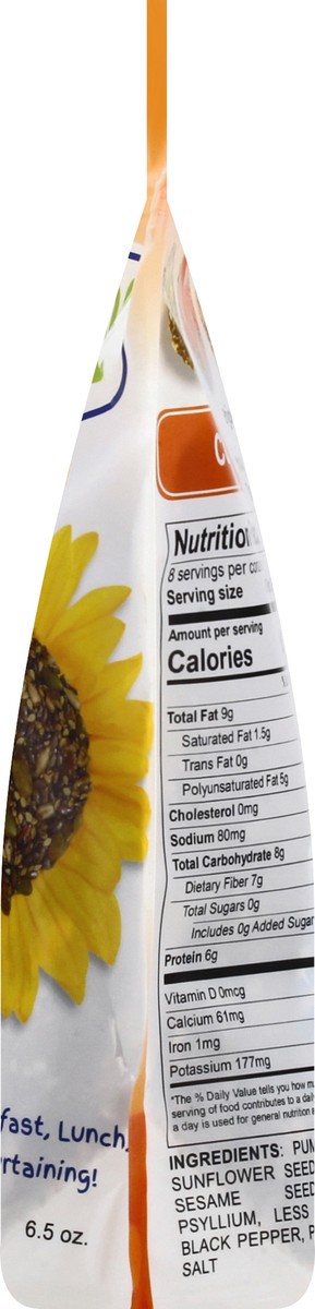 Pumpkin Seeds, Sunflower Seeds, Flaxseed, Sesame Seeds, Cumin, Psyllium, Less Than 2% of: Black Pepper, Pink Himalayan Salt.