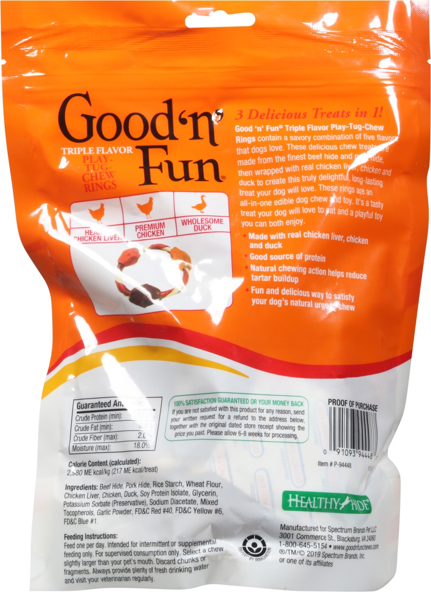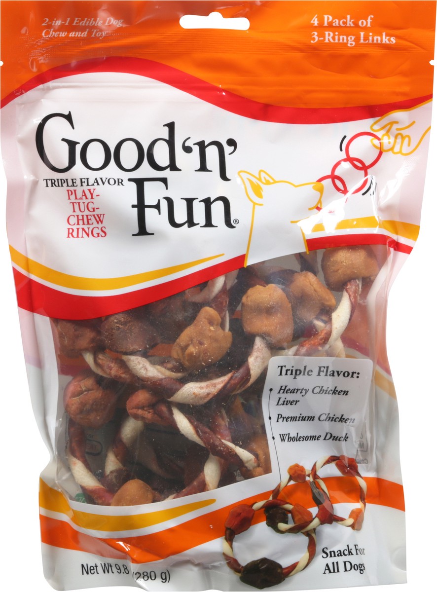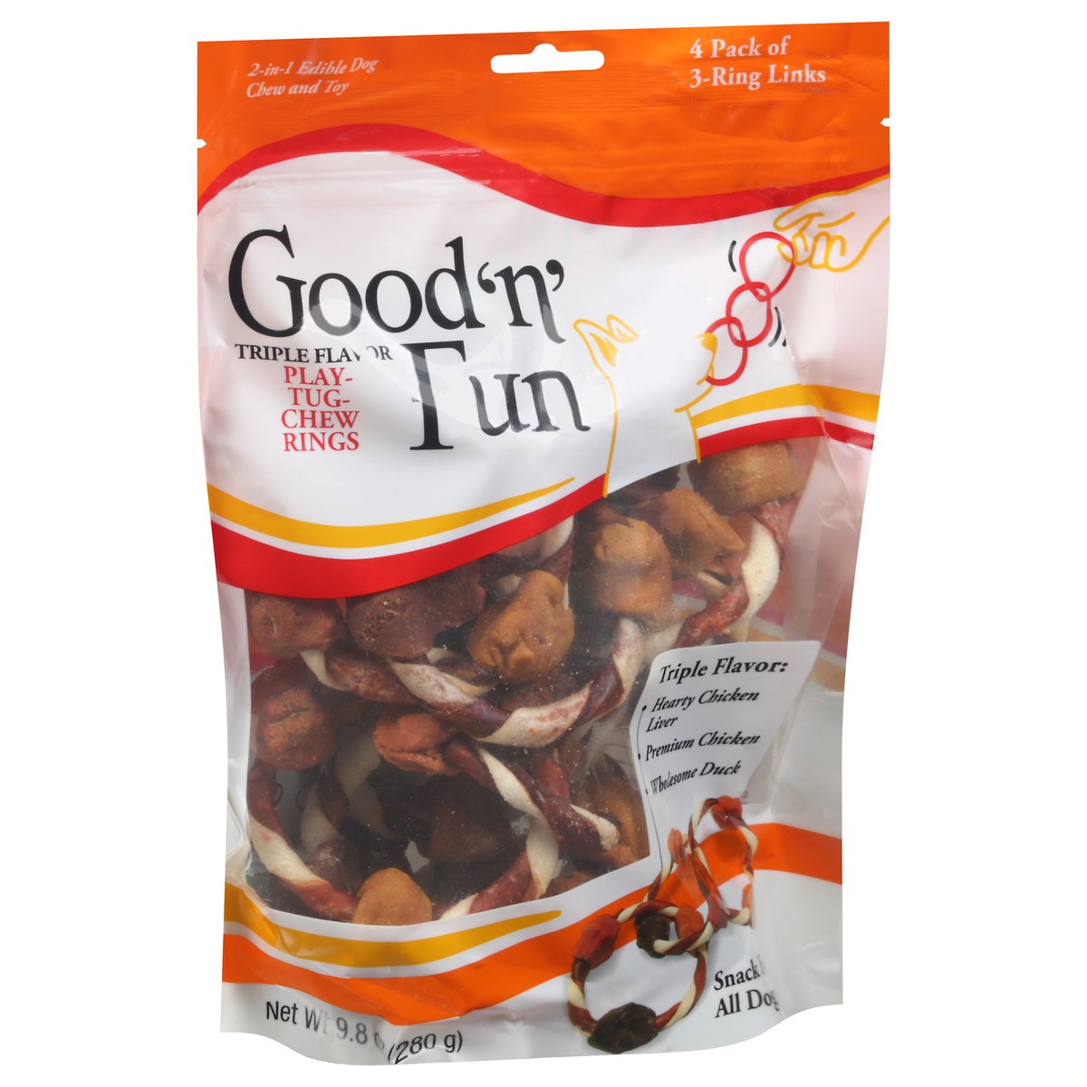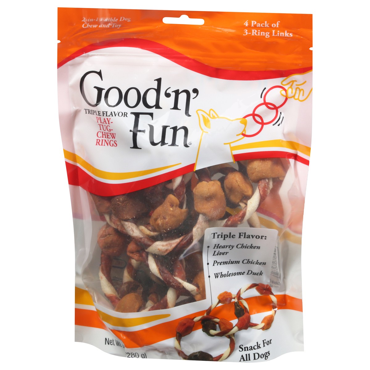 Good 'n' Fun Play-Tug-Chew Rings Snacks for All Dogs 4 Pack 9.8 ea