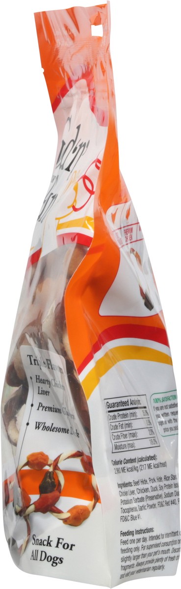 Beef Hide, Pork Hide, Rice Starch, Wheat Flour, Chicken Liver, Chicken, Duck, Soy Protein Isolate, Glycerin, Potassium Sorbate (Preservative), Sodium Diacetate, Mixed Tocopherols, Garlic Powder, FD&C …