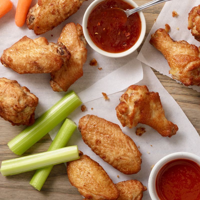 Chicken Wing - Chicken Wing Sections, Water, Contains 2% or less of Modified Food Starch, Salt, Rice Flour, Sodium Phosphates, Maltodextrin, Dextrose, Natural Flavors, Algin, Par-fried in Vegetable Oi…