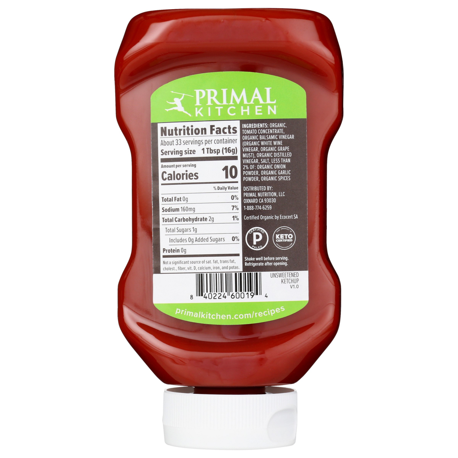 Meet your new main squeeze! PRIMAL KITCHEN Organic Unsweetened Ketchup is full of the classic taste you love, tidied up with high-quality ingredients. USDA Organic, Non-GMO Project Certified, and Whol…