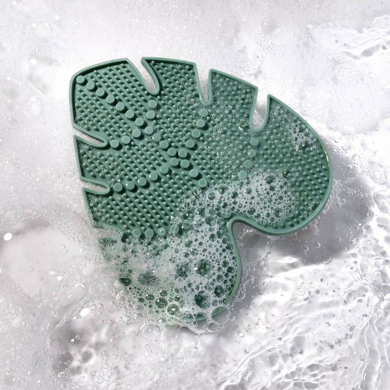 - Makeup brush cleaning mat designed with a suction cup for easy, mess-free usage