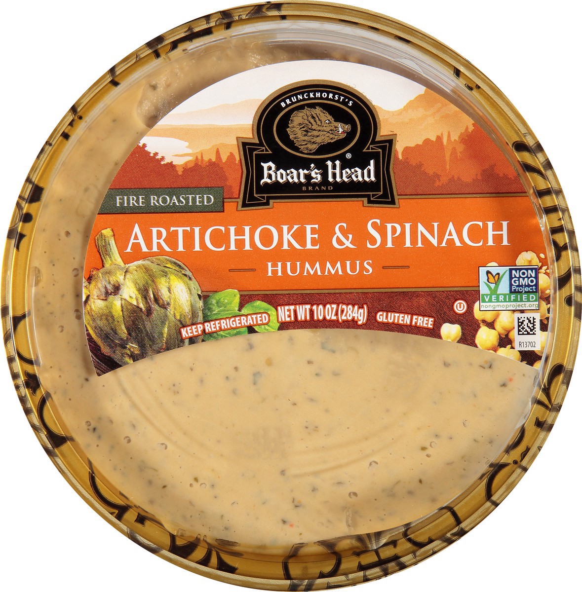 Creamy Mediterranean-inspired hummus is topped with fire-roasted artichokes, spinach, garlic and aromatics in this creative combo. Boar’s Head Fire Roasted Artichoke & Spinach Hummus is a smooth, savo…