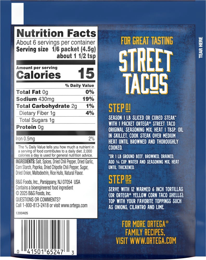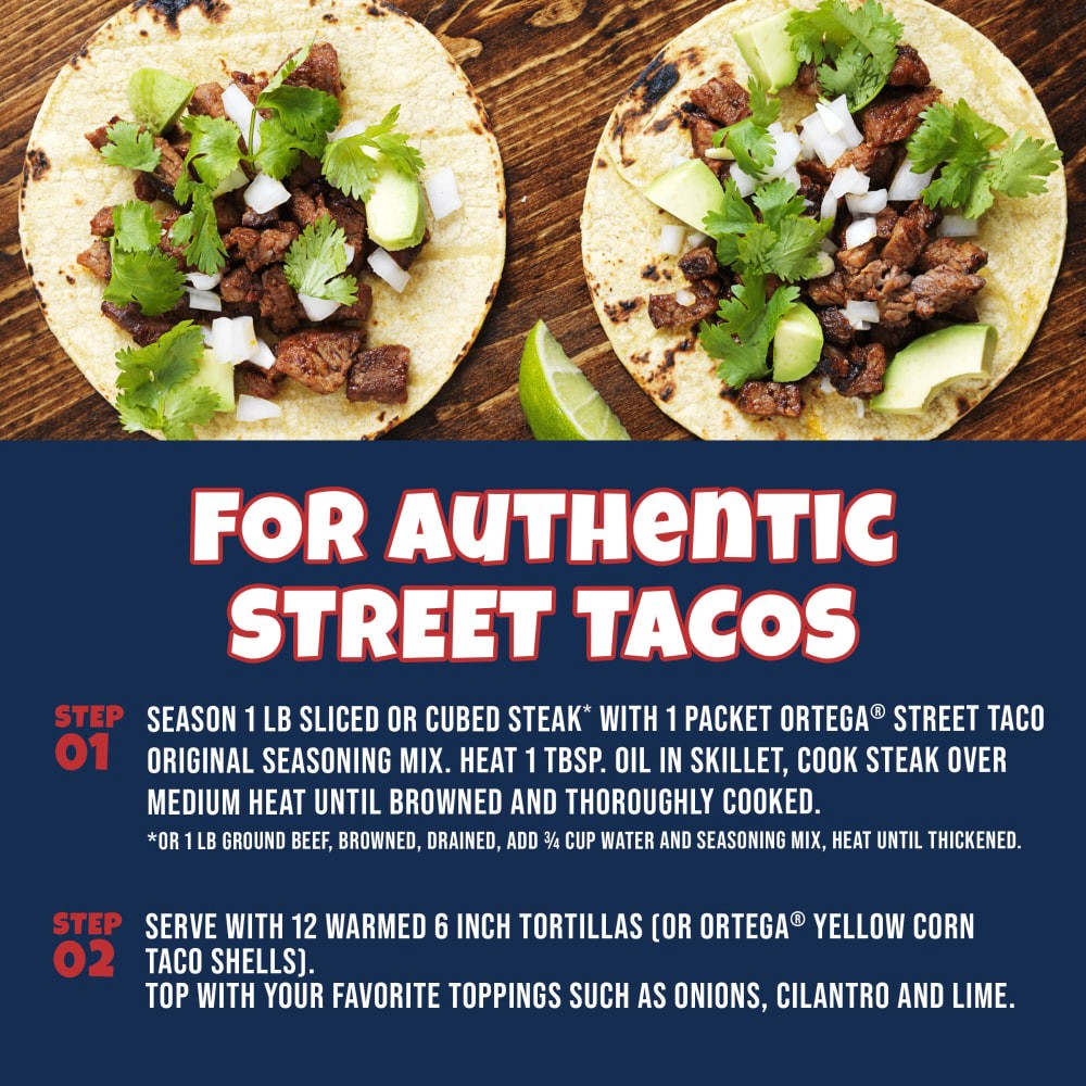 - One 1 oz packet of Ortega Street Taco Original Seasoning Mix—bring authentic street taco flavors home