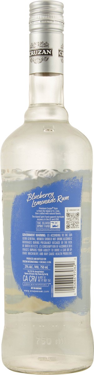Premium Cruzan Rum from the Island of St Croix, with natural blueberry and lemon flavors. Rum with natural flavor. In 1760, a sugar mill began crushing cane at the current site of the Cruzan Rum distiā¦