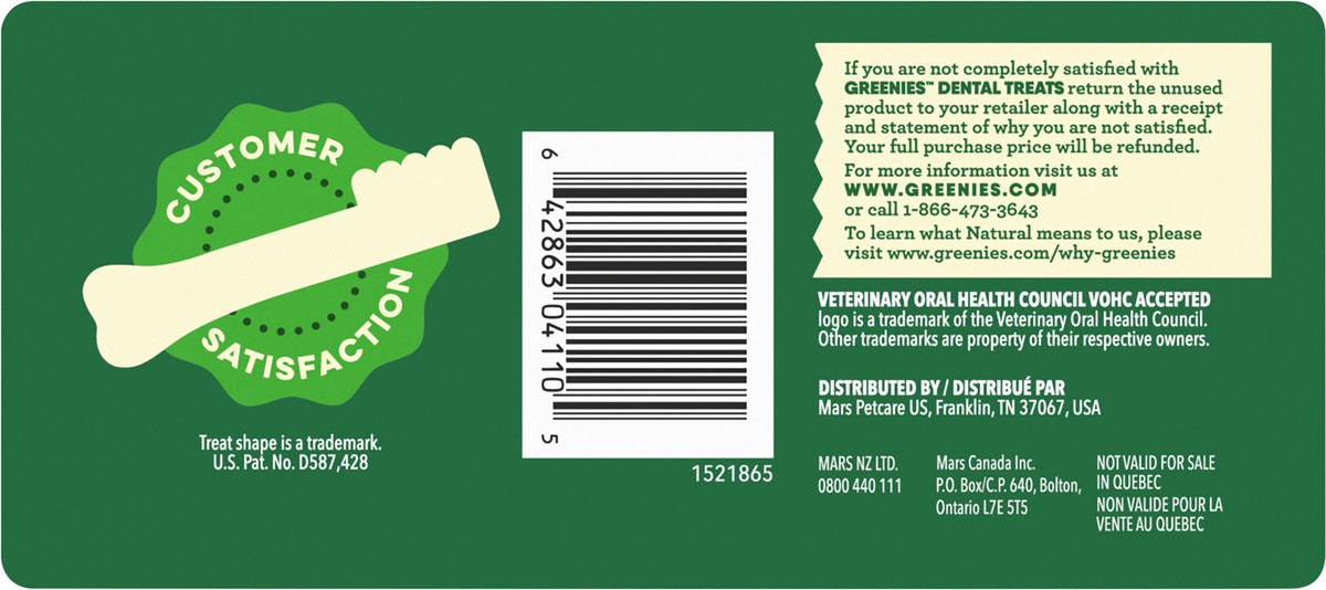 Calorie Content (Calculated): 2996 kcal ME/kg; 139 kcal ME/treat We Hit the Spot With Complete & Balanced Nutrition: Greenies Dental Treats are formulated to meet the nutritional levels established by…