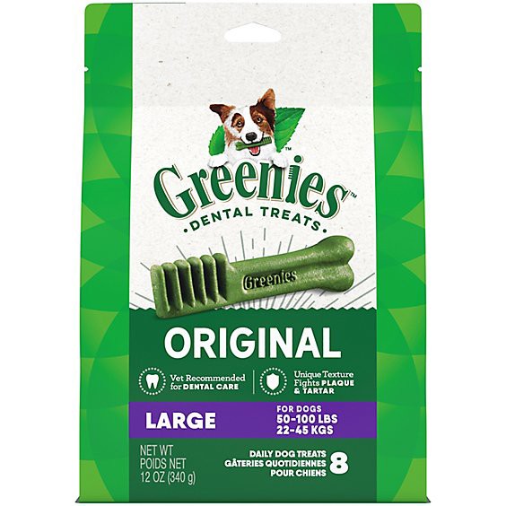 Greenies Original Large Natural Dog Dental Care Chews Oral Health Dog Treats 8 Count - 12 Oz
