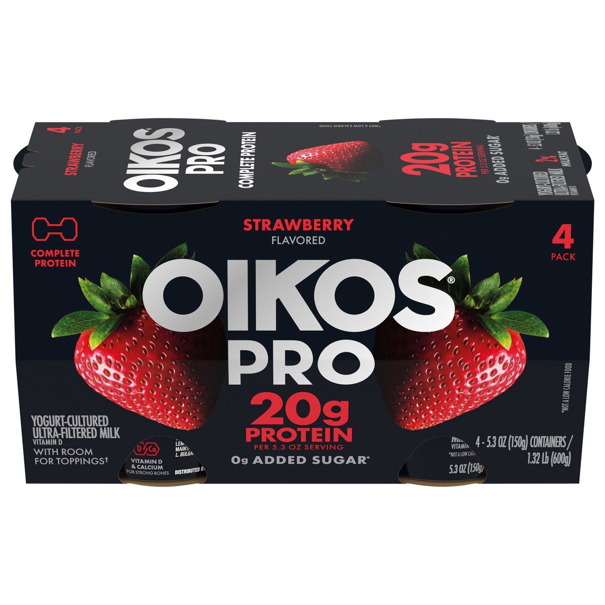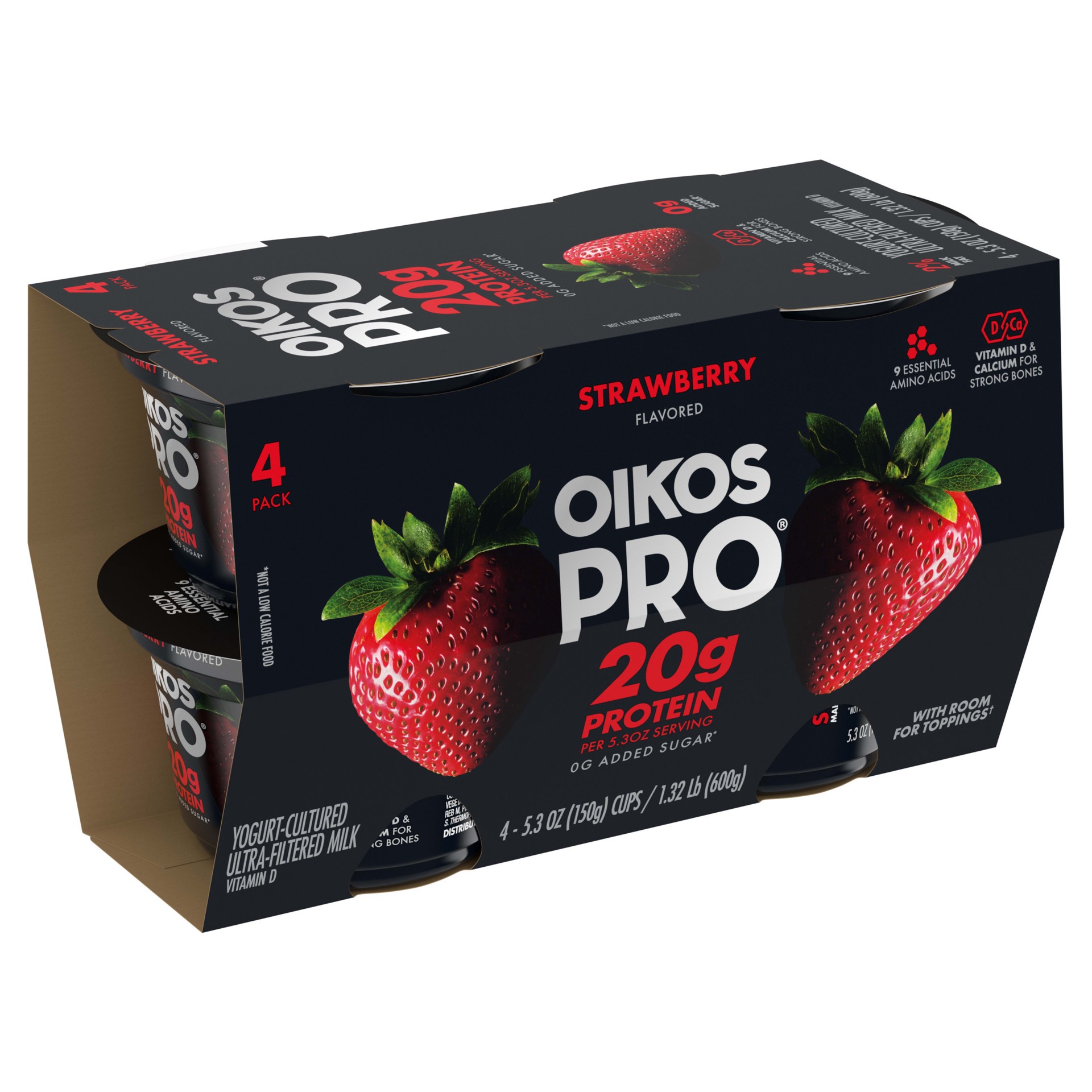 - Stronger Makes Everything Better: Four 5.3 oz cups of Oikos Pro Strawberry Yogurt-Cultured Ultra-Filtered Milk Product packed with B vitamins (B2, B6, B12)