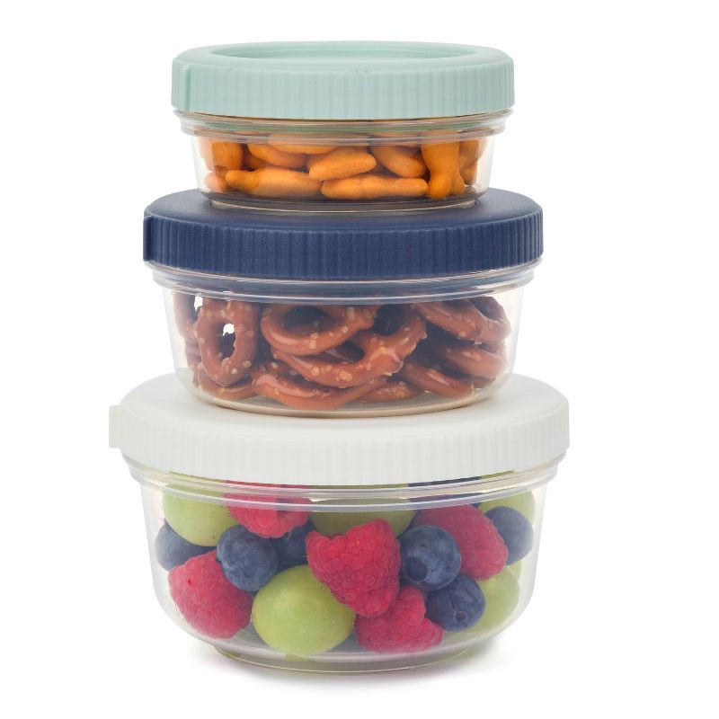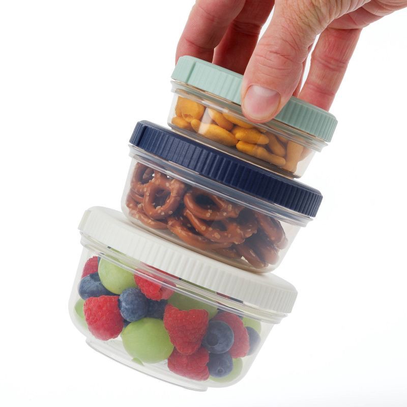 SnapLock BPA free 3pc SnapLock Nesting Snack Set is great compact Storage. Use for snacks, camping, road trips! Stacks when full and nests when empty. Press together for stacking. Includes 3 pieces th…