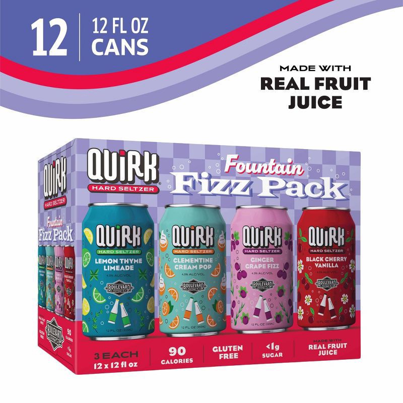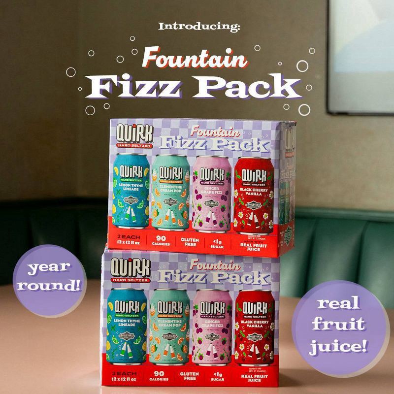 Slide a can down the counter and flip for the fresh flavors of the Fountain Fizz Pack. Retro inspiration meets real fruit juice in our newest Quirk Hard Seltzers. With lots of fizz and a hint of pop, …
