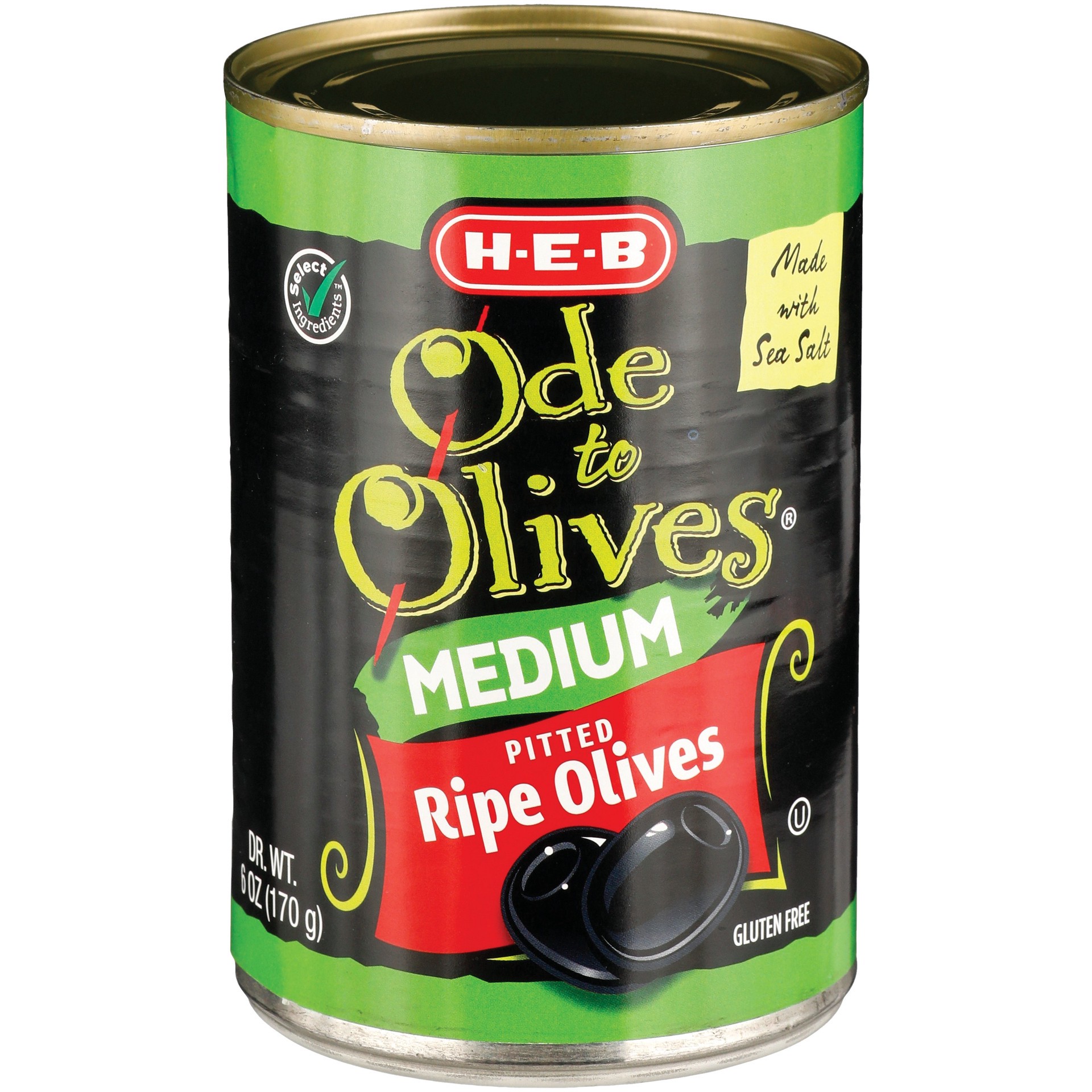 H-E-B Ode to Olives Medium Ripe Pitted Black Olives