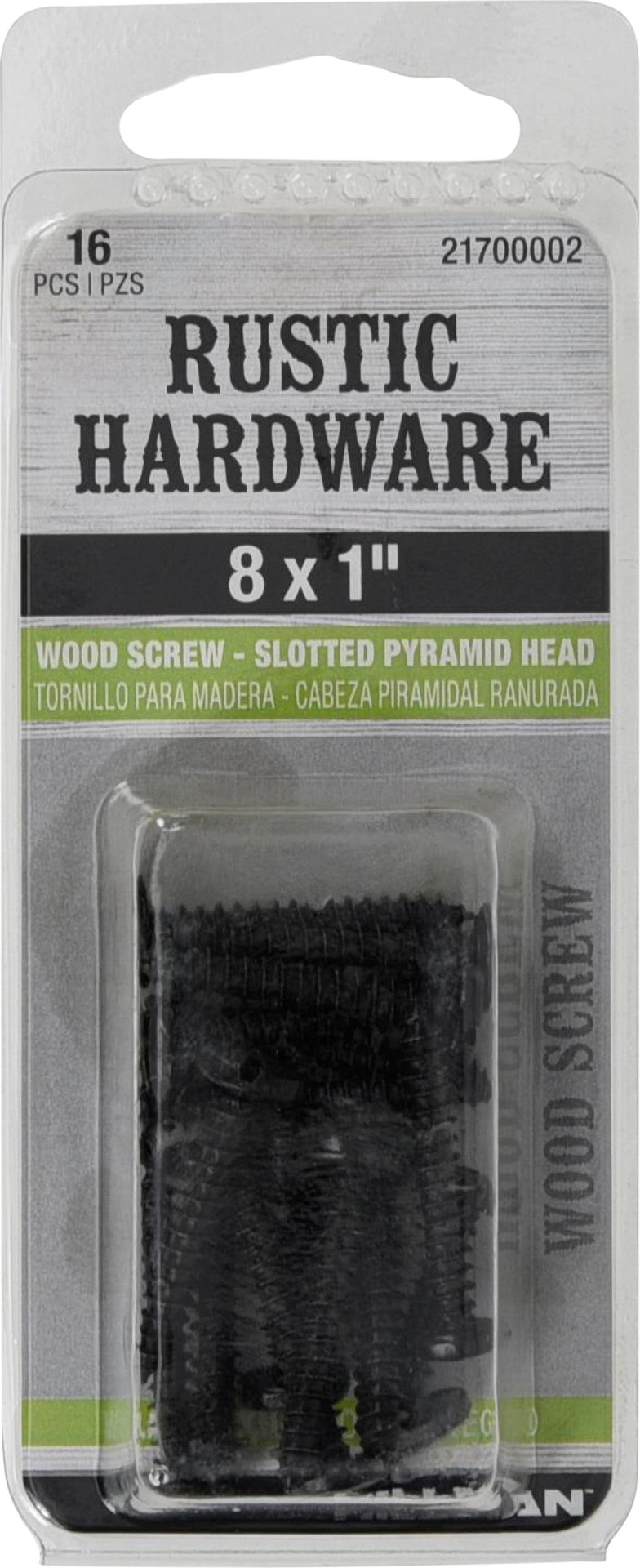 16 pieces per package. Contains all the features of a modern day wood screw, but the pyramid head and slotted drive combined with the black oxide finish give it that rustic or old world look. The blac…