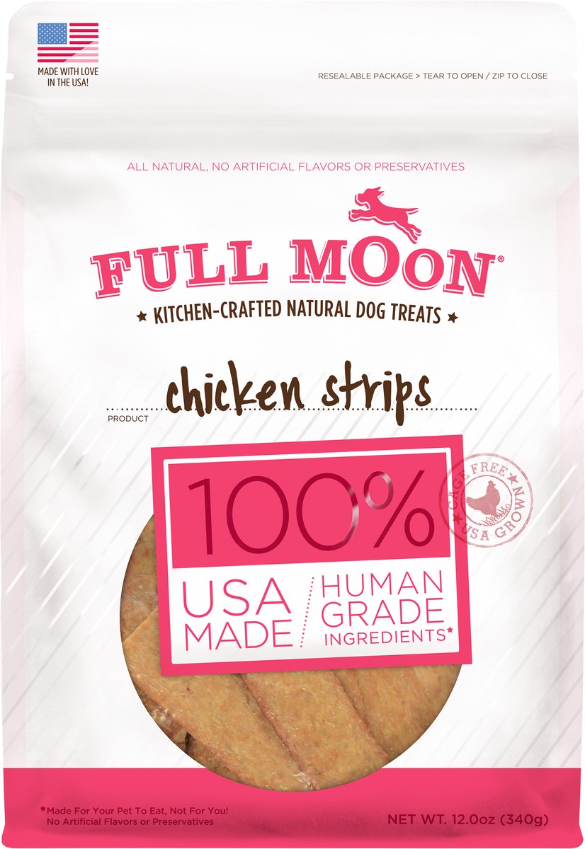 FULL MOON All Natural Human Grade Dog Treats Chicken Strips, 12 Ounce