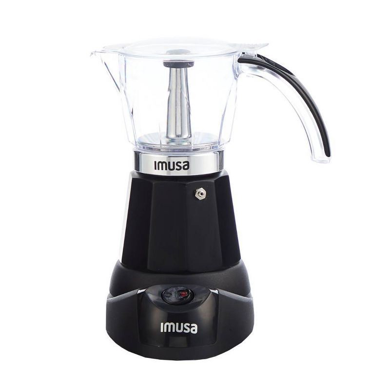 The IMUSA Black Electric Espresso Maker is the perfect appliance for your coffee needs. This trendy coffee maker is made from cast aluminum with an elegant finish, black base and a brown tinted tritan…