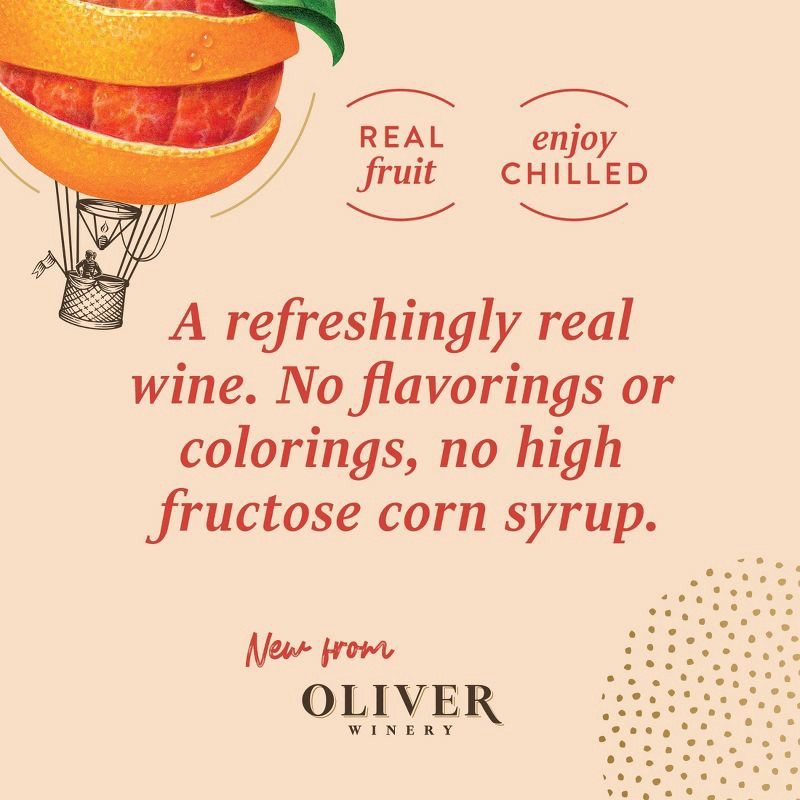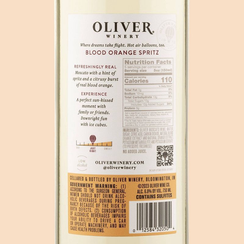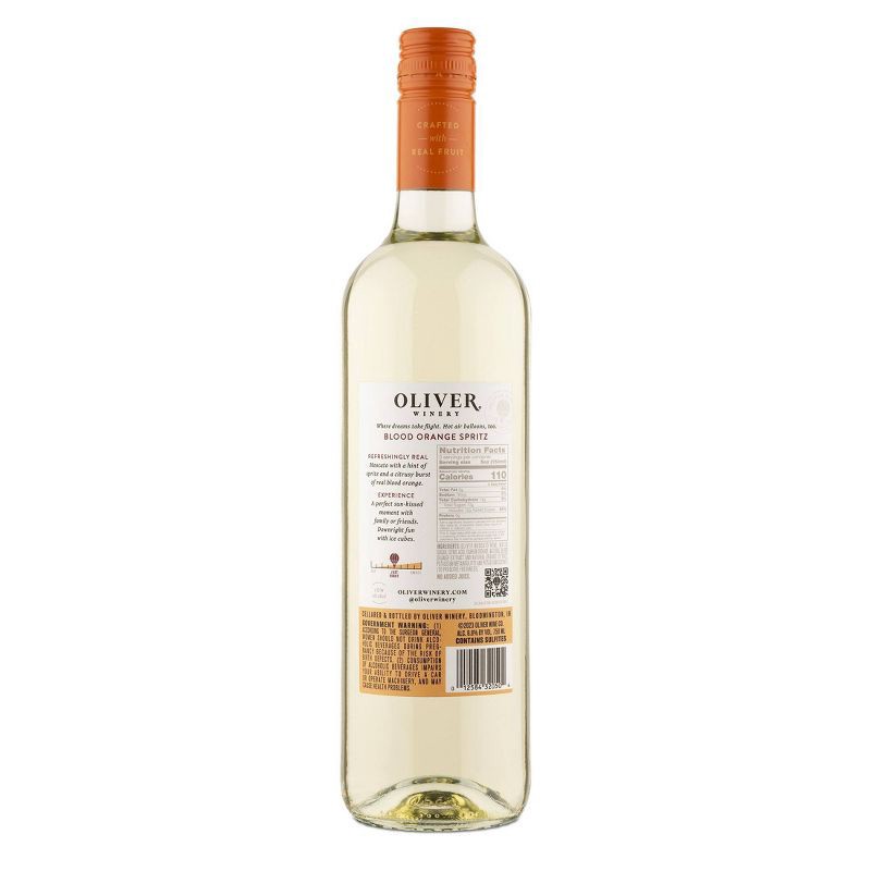 OLIVER MOSCATO WINE, WATER, SUGAR, CITRIC ACID, CARBON DIOXIDE, NATURAL BLOOD ORANGE EXTRACT AND NATURAL ORANGE EXTRACT, NATURAL FLAVORS, POTASSIUM METABISULFITE AND POTASSIUM SORBATE (TO PRESERVE FRE…