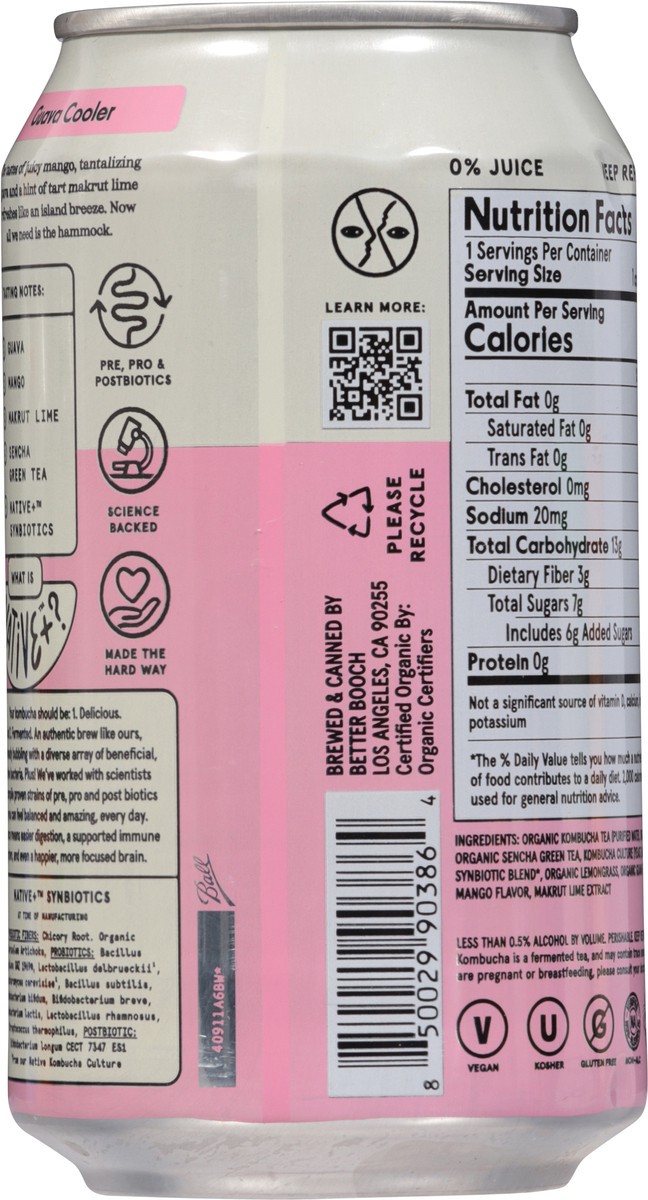 Organic Kombucha Tea (Purified Water, Organic Cane Sugar, Organic Sencha Green Tea, Kombucha Culture [Yeast, Bacteria]), Native+ Synbiotic Blend, Organic Lemongrass, Organic Guava Flavor, Organic Mang…