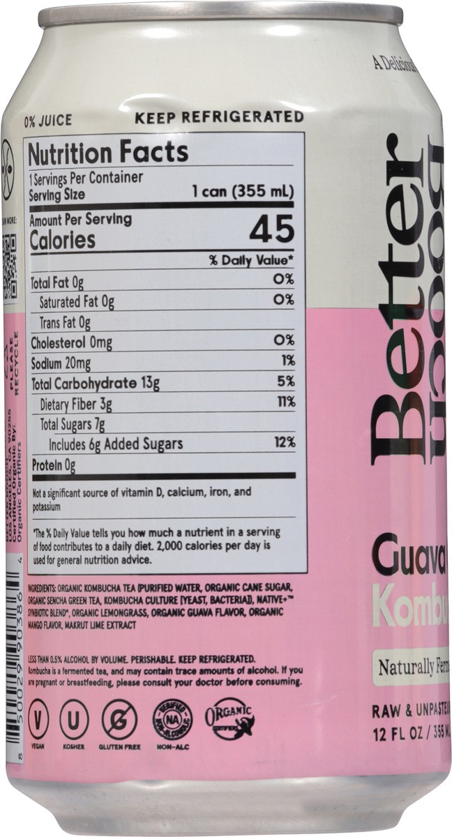 Better Booch Kombucha Sparkling Probiotic Drink Guava Cooler