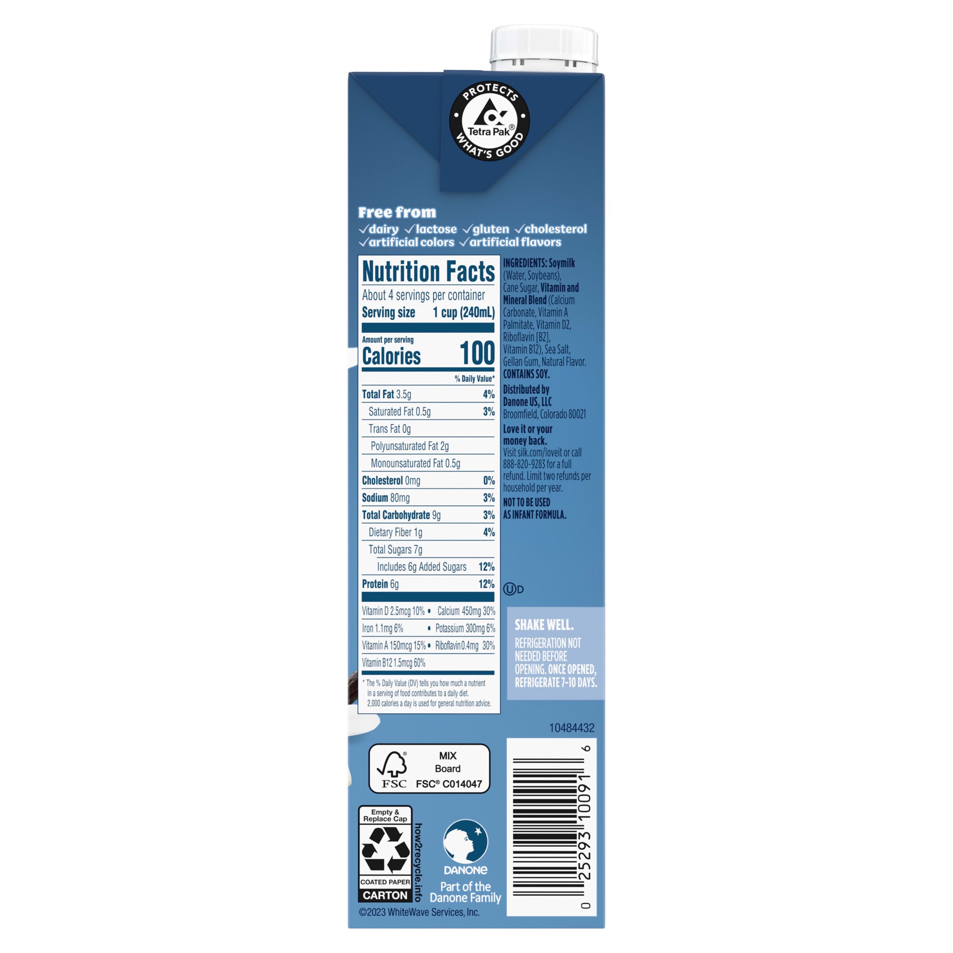 Soymilk (Water, Soybeans), Cane Sugar, Vitamin and Mineral Blend (Calcium Carbonate, Vitamin A Palmitate, Vitamin D2 Riboflavin [B2], Vitamin B12), Sea Salt, Gellan Gum, Natural Flavor.