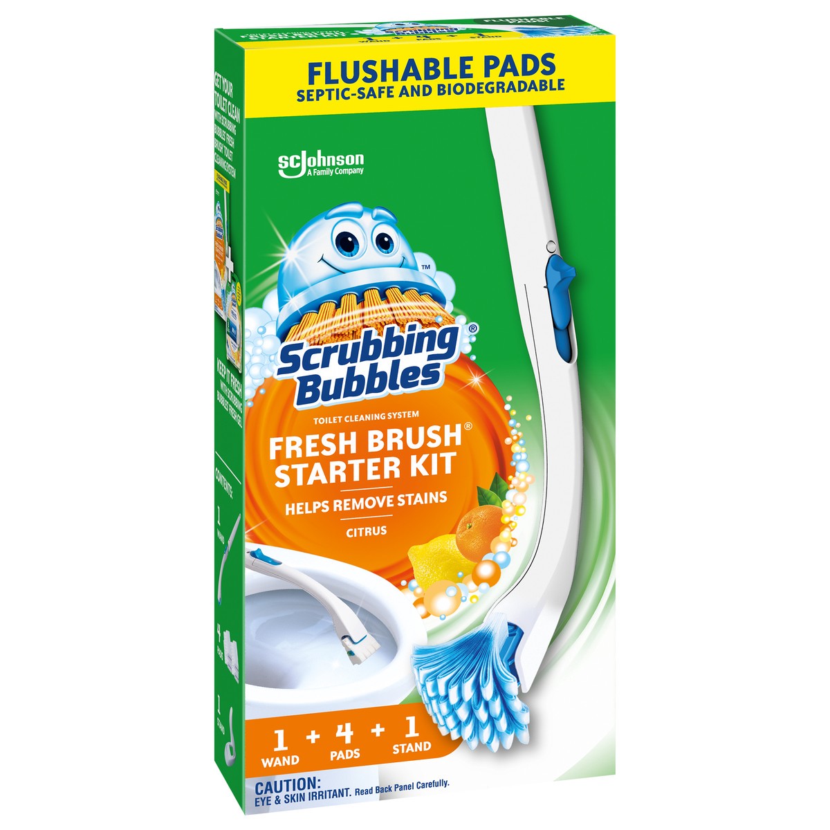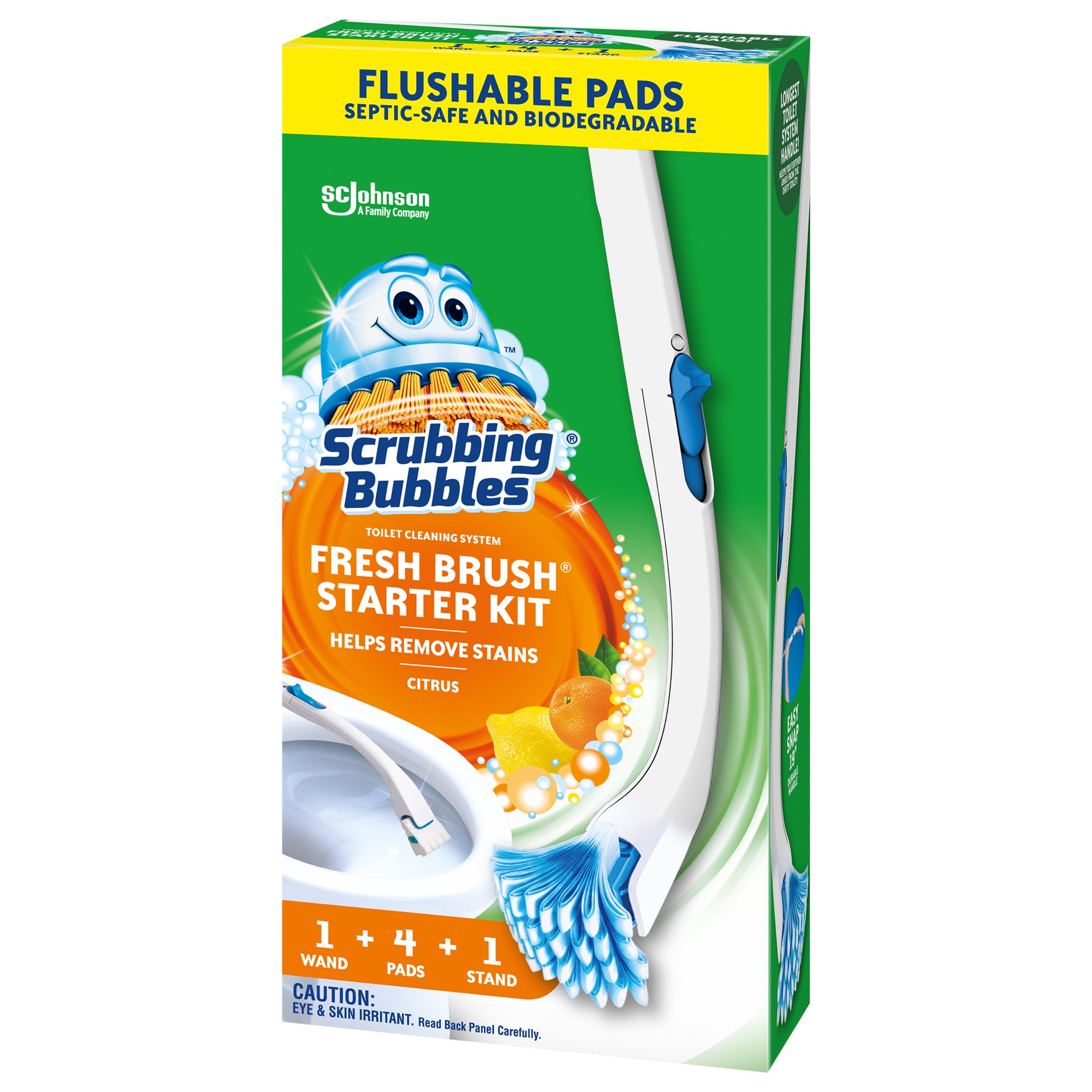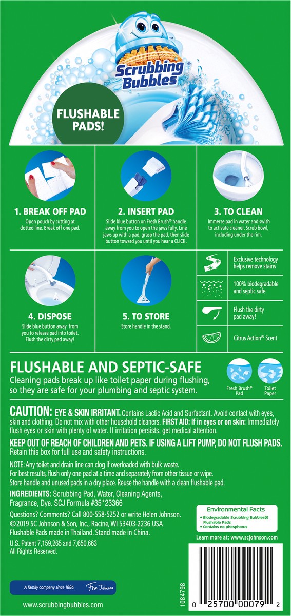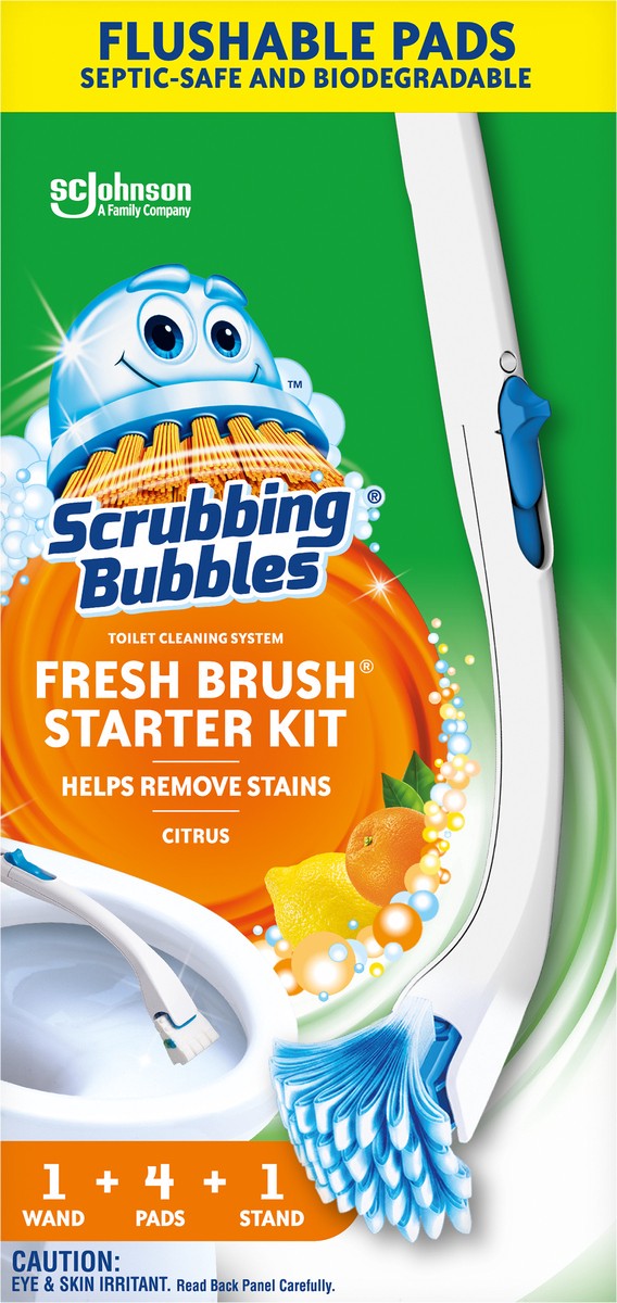 Scrubbing Bubbles Fresh Brush Starter Kit is the only toilet cleaning toolkit with flushable pads for a convenient clean. Power through hard water, mineral, and limescale stains with this handheld, di…