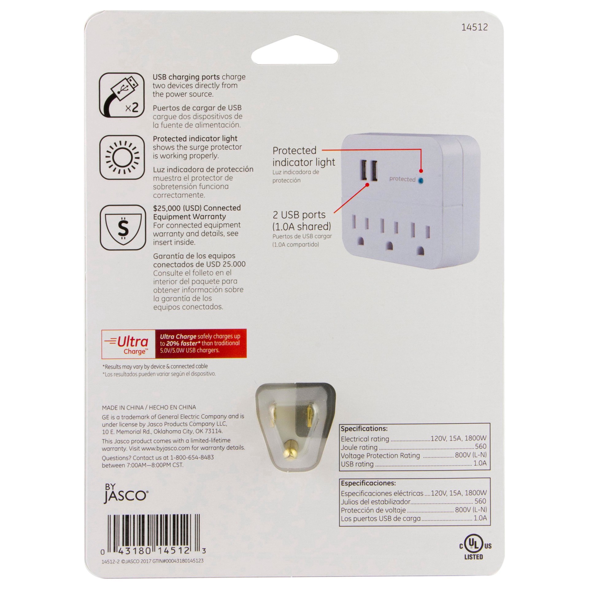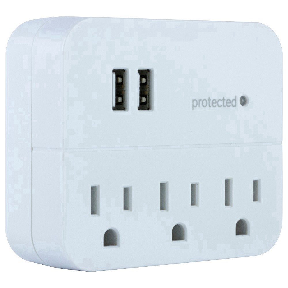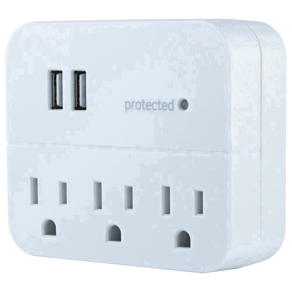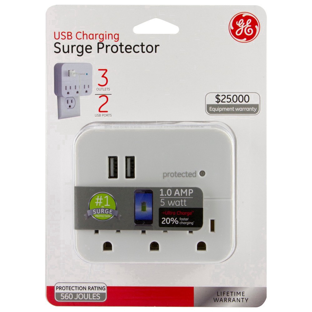 Plug and power with the GE-branded 3-Outlet, 2-USB Surge Protector. Featuring three grounded, three-prong outlets and two USB-A ports, the plug-in tap connects your favorite devices in one convenient …