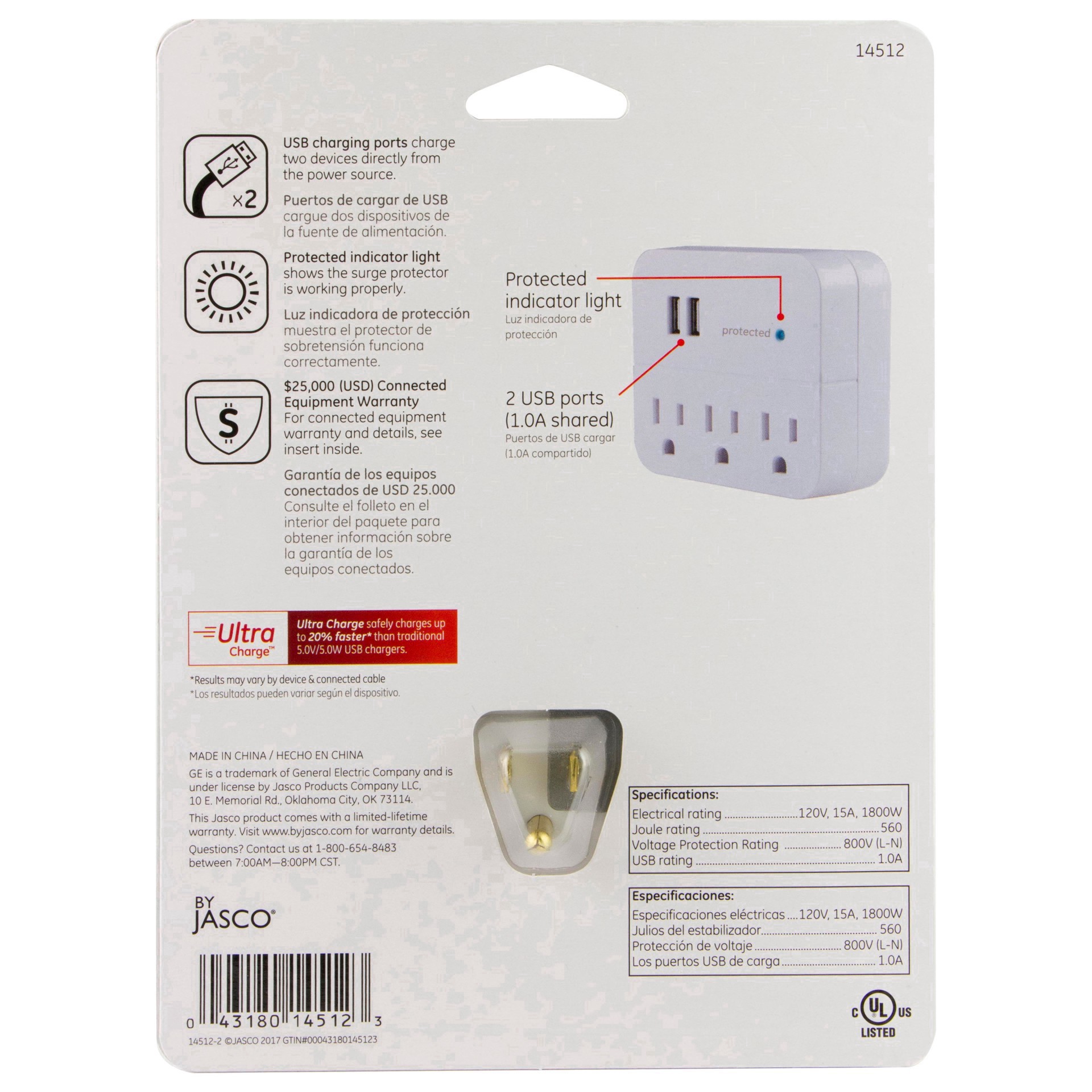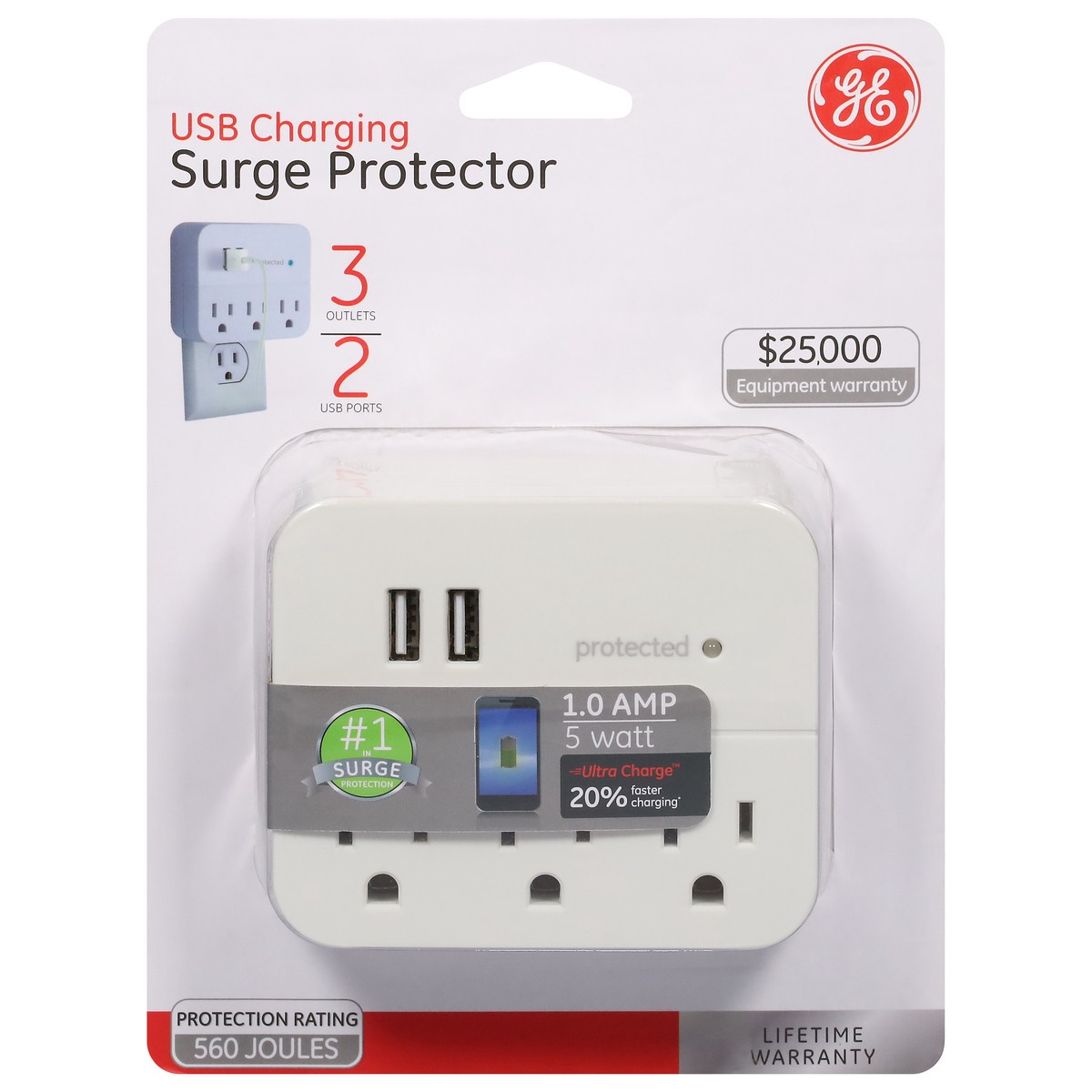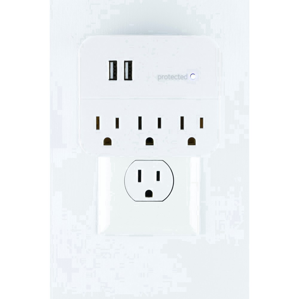 Plug and power with the GE-branded 3-Outlet, 2-USB Surge Protector. Featuring three grounded, three-prong outlets and two USB-A ports, the plug-in tap connects your favorite devices in one convenient …