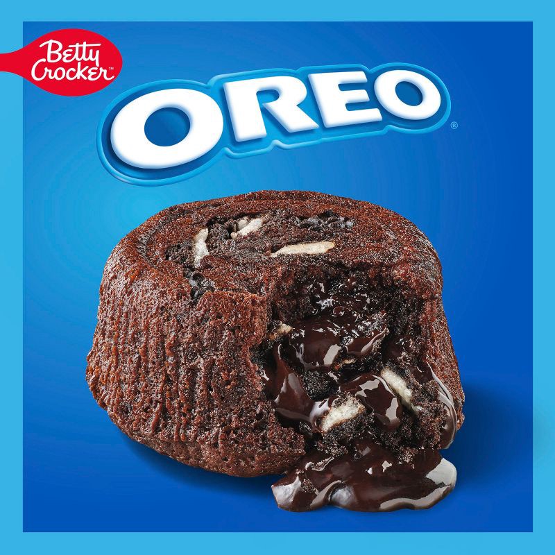 - BETTY CROCKER & OREO: Betty Crocker Chocolate Lava Cake Mix with real OREO Cookie Pieces you can sprinkle into the batter before baking